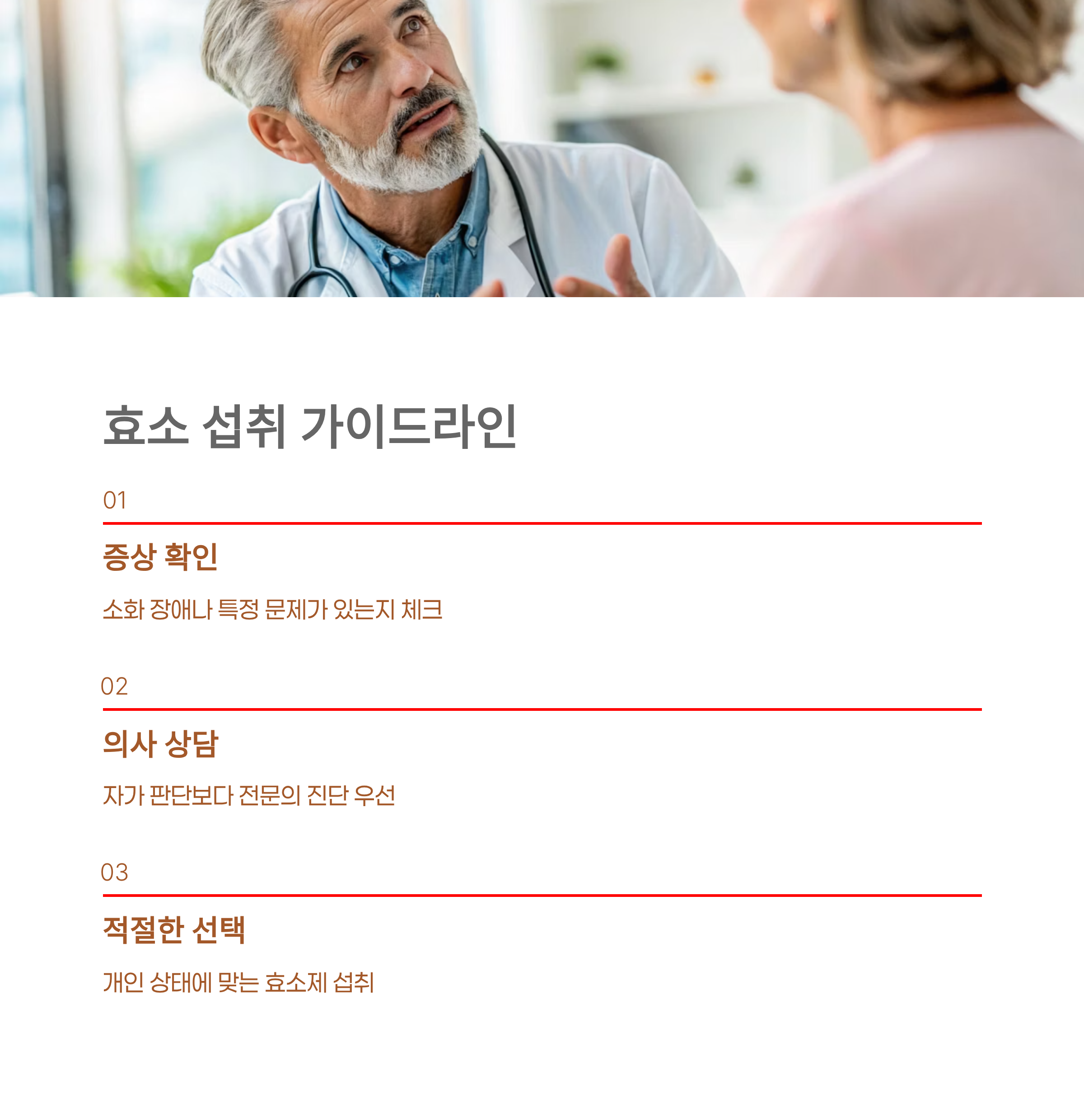 의사의 진단을 통해 적절한 효소제를 섭취하는 것이 효과적입니다.