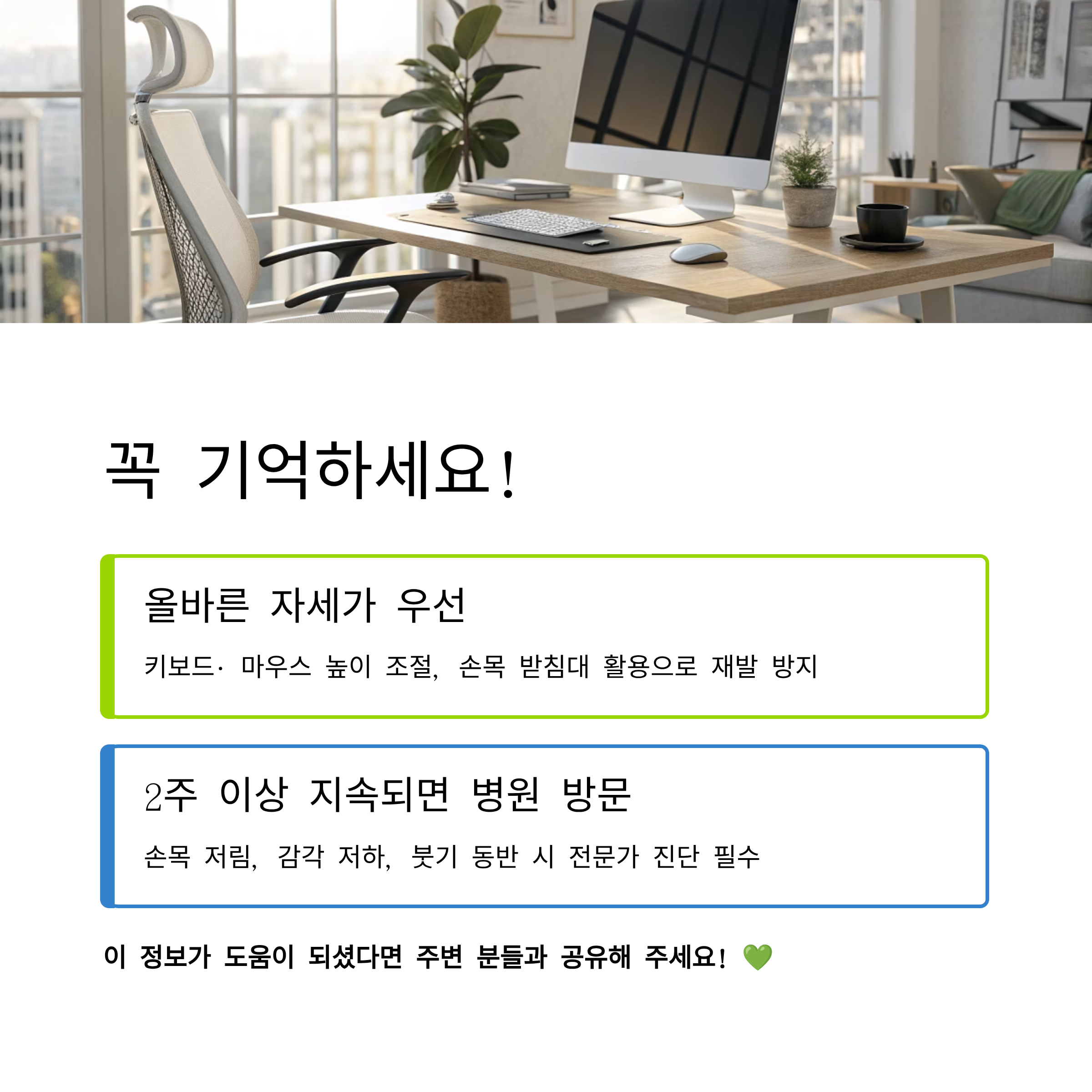 운동을 아무리 열심히 해도, 잘못된 자세를 유지하면 손목 통증은 다시 돌아옵니다.