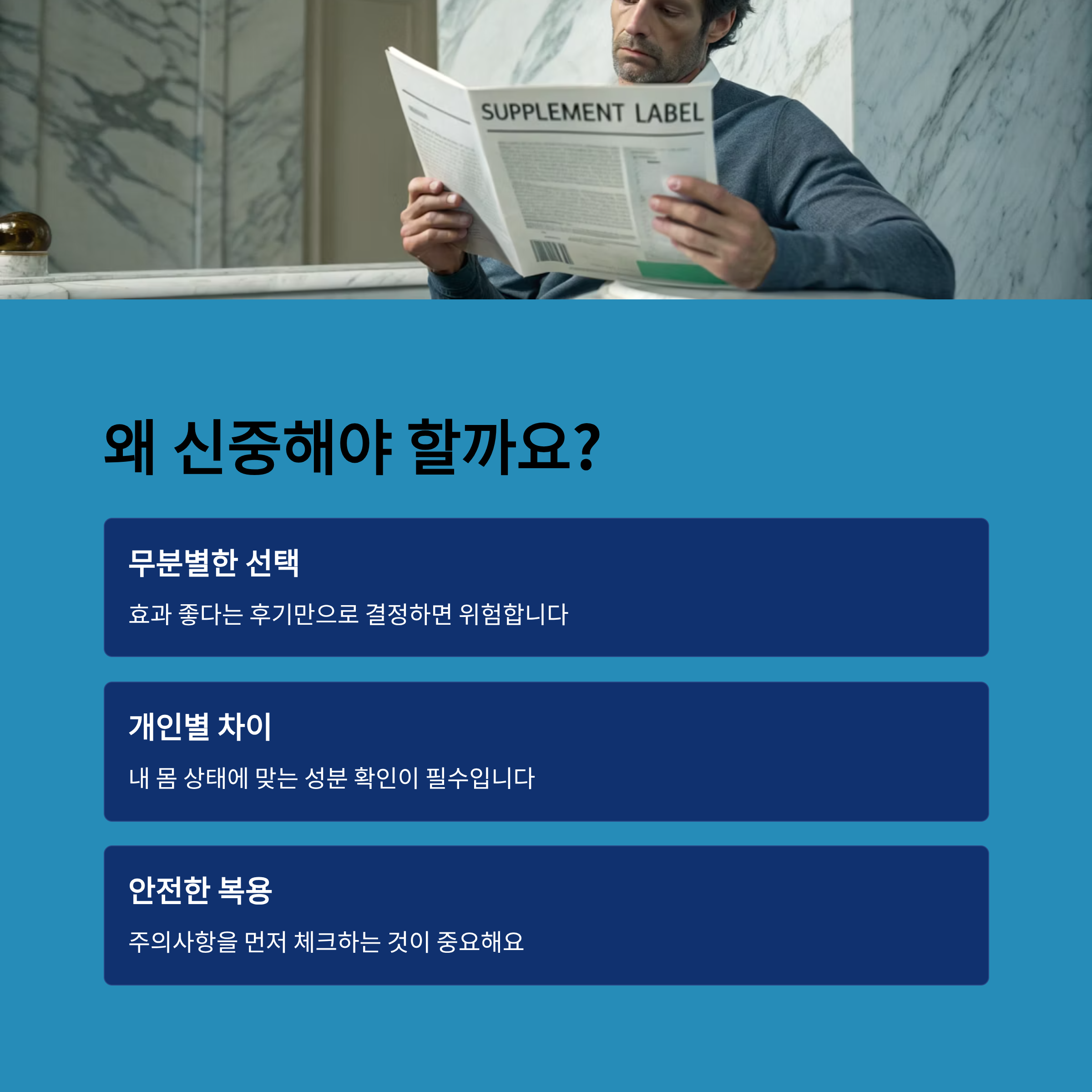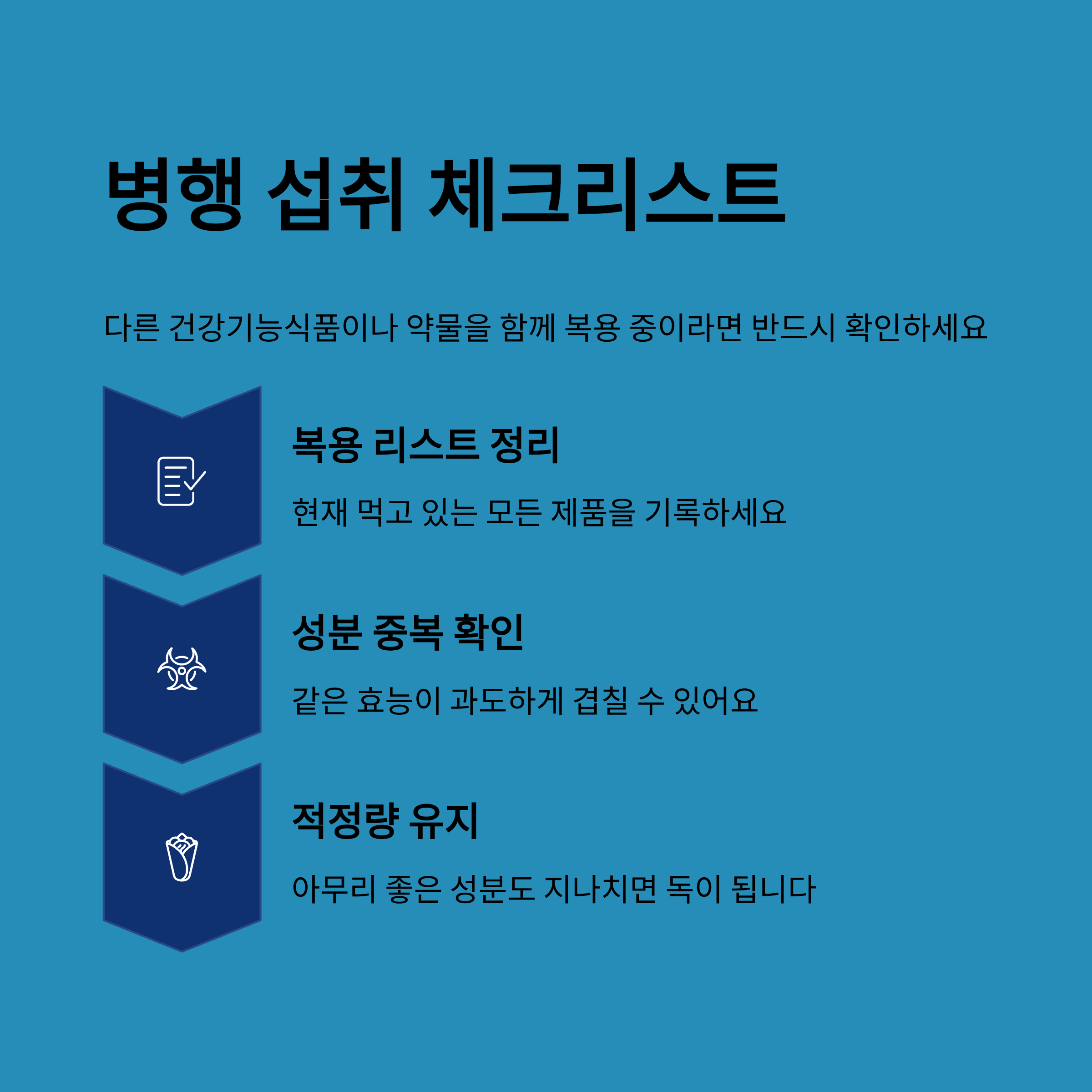 다른 건강기능식품이나 약물을 함께 복용 중이라면, 꼭 복용 중인 리스트를 정리해보세요.