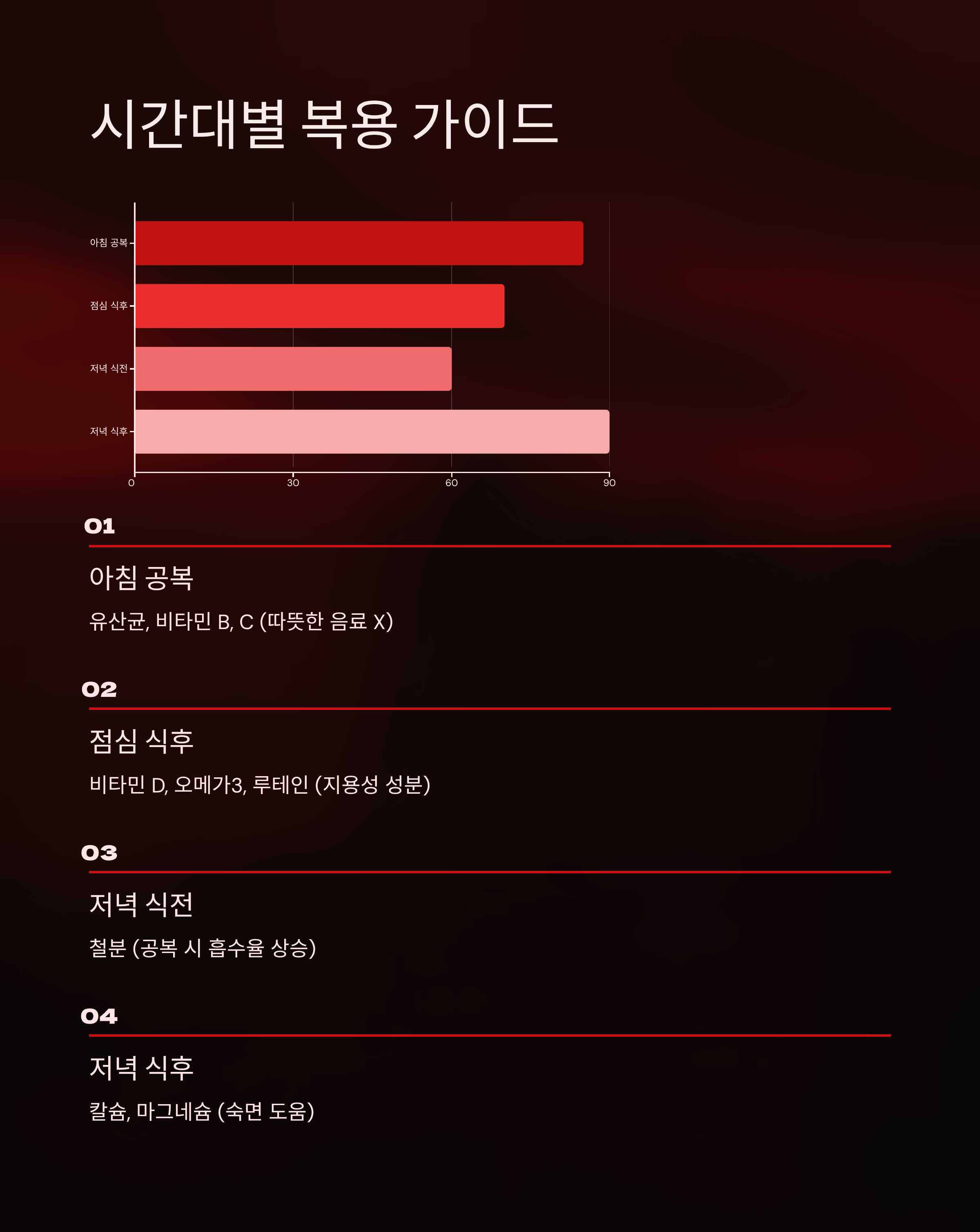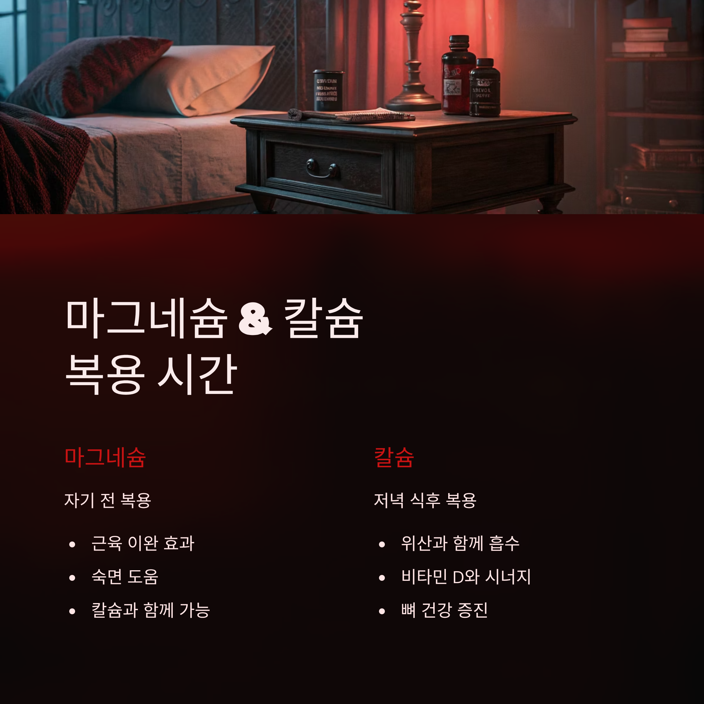 | 저녁 식후 | 칼슘, 마그네슘 | 숙면 도움 성분 |