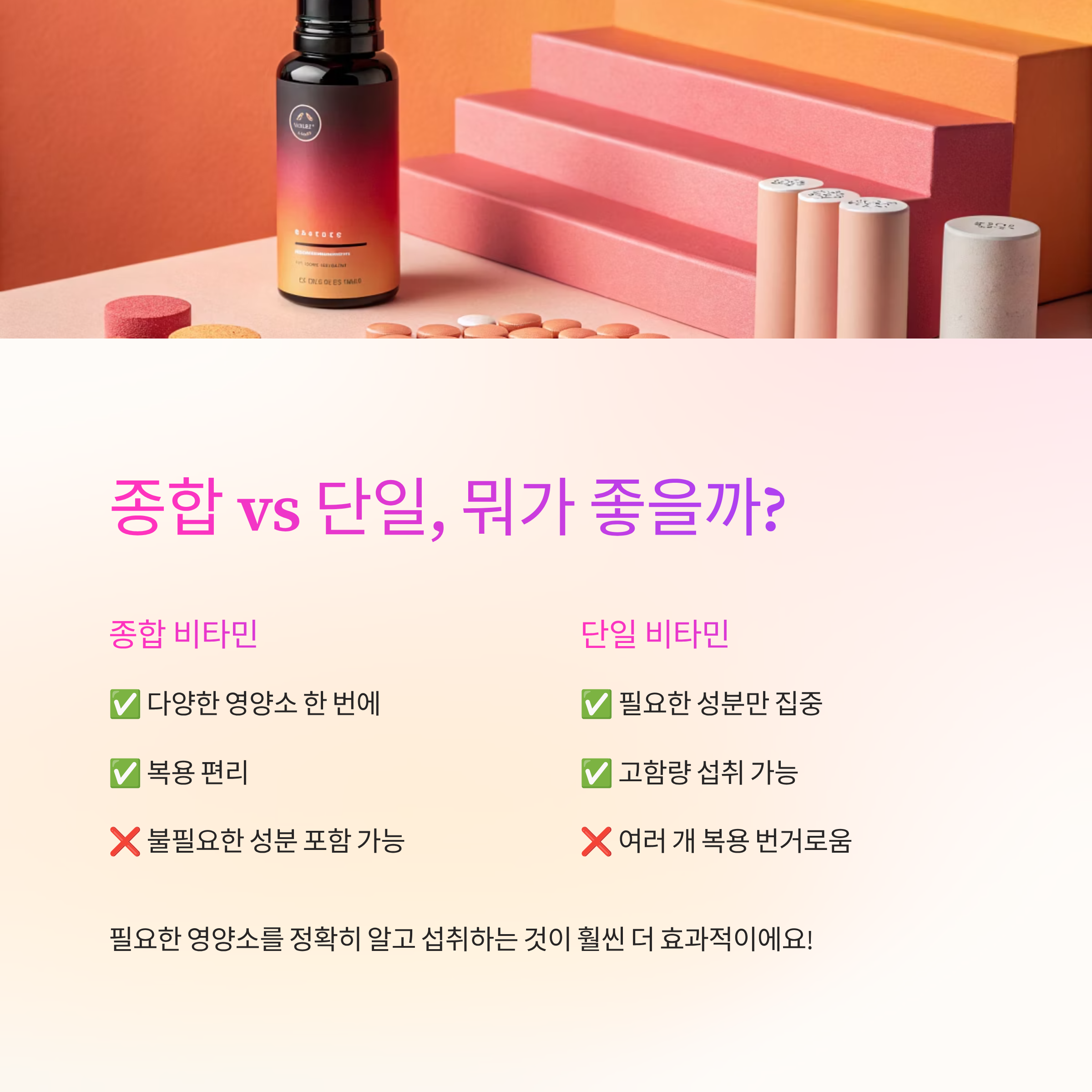 단일 영양소 vs 종합 비타민, 어떤 게 좋을까?