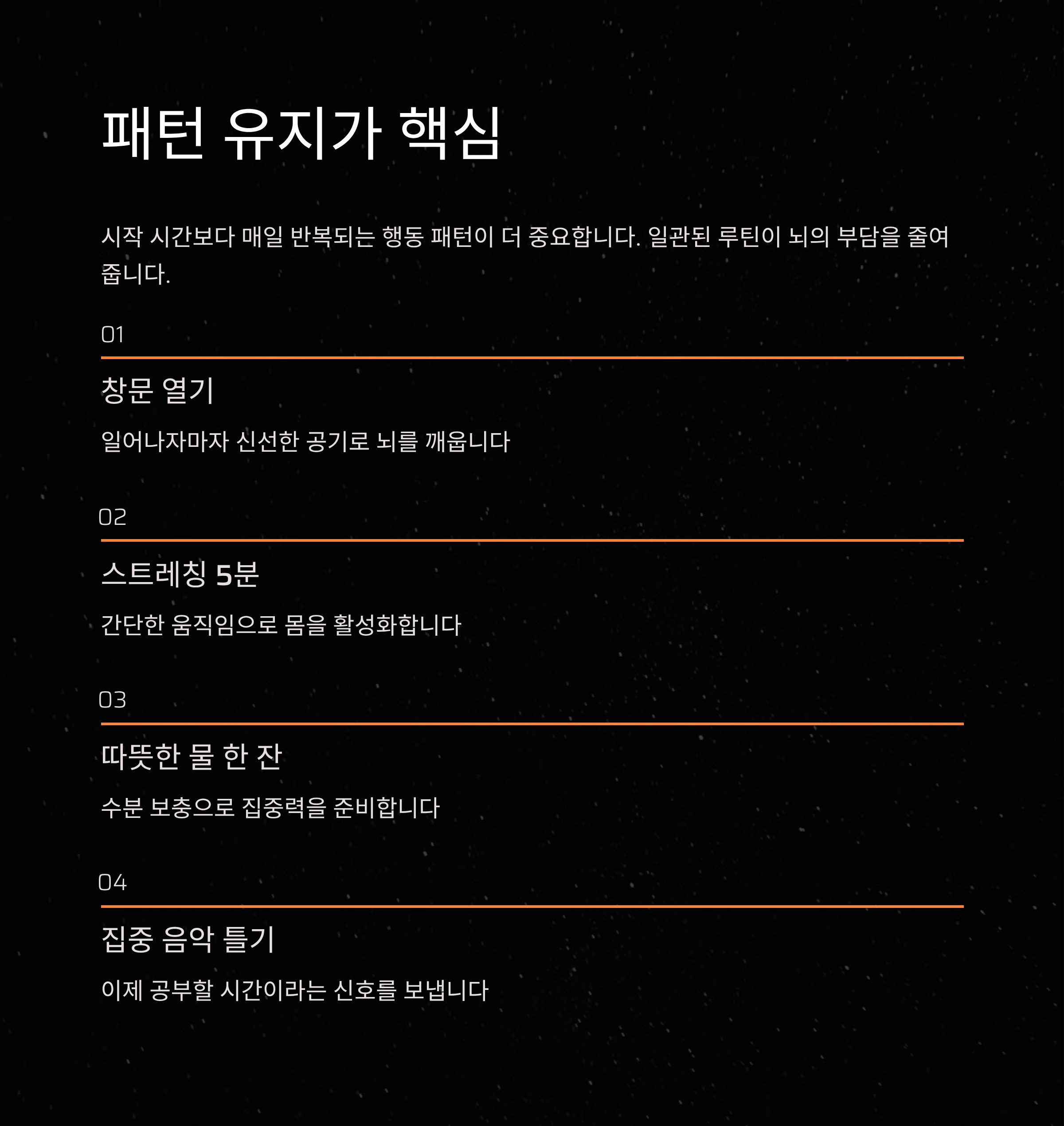 1. 루틴은 ‘시작 시간’보다 ‘패턴 유지’가 더 중요해요