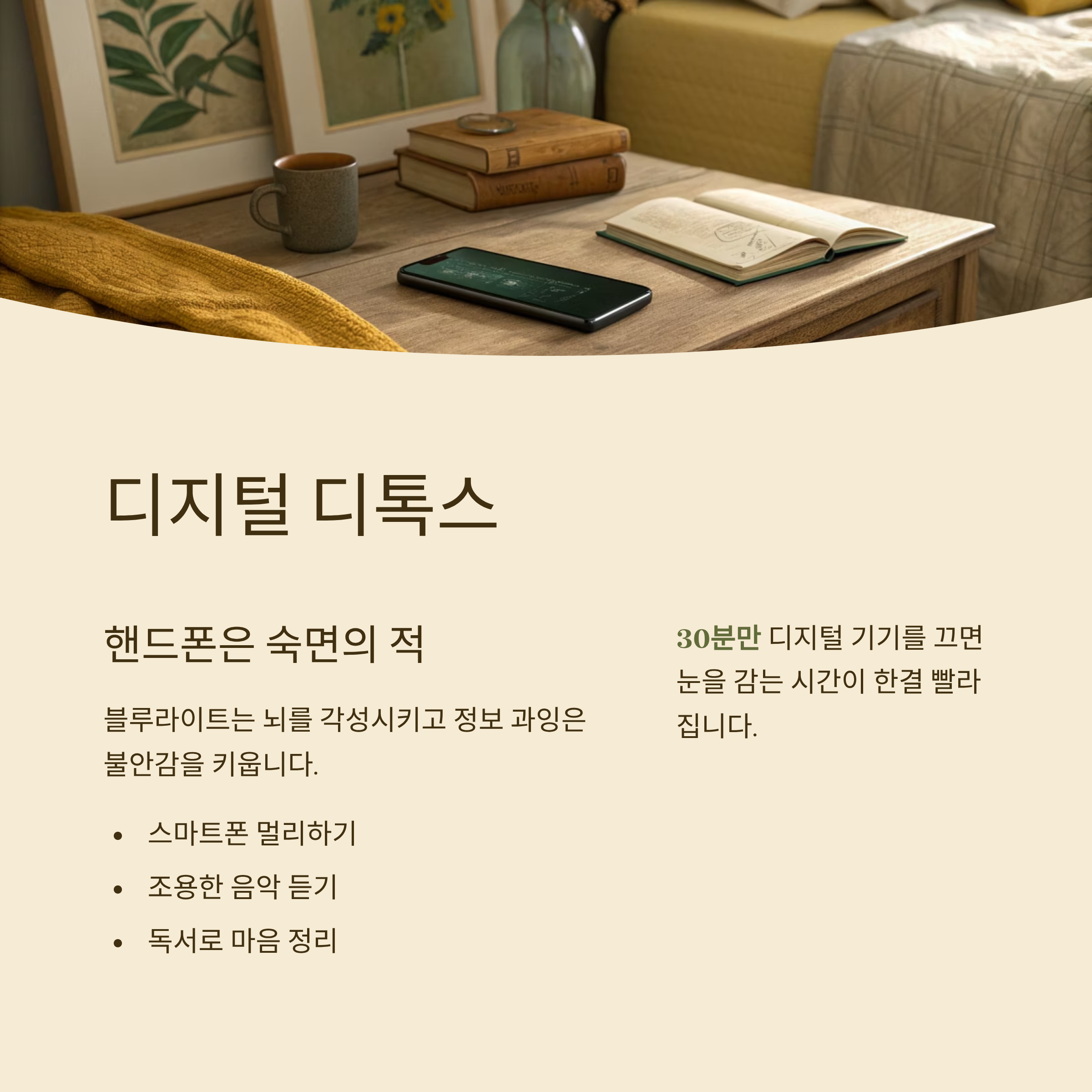 이 루틴을 1~2주만 유지하면 뇌가 자동으로 수면 모드에 들어갑니다.