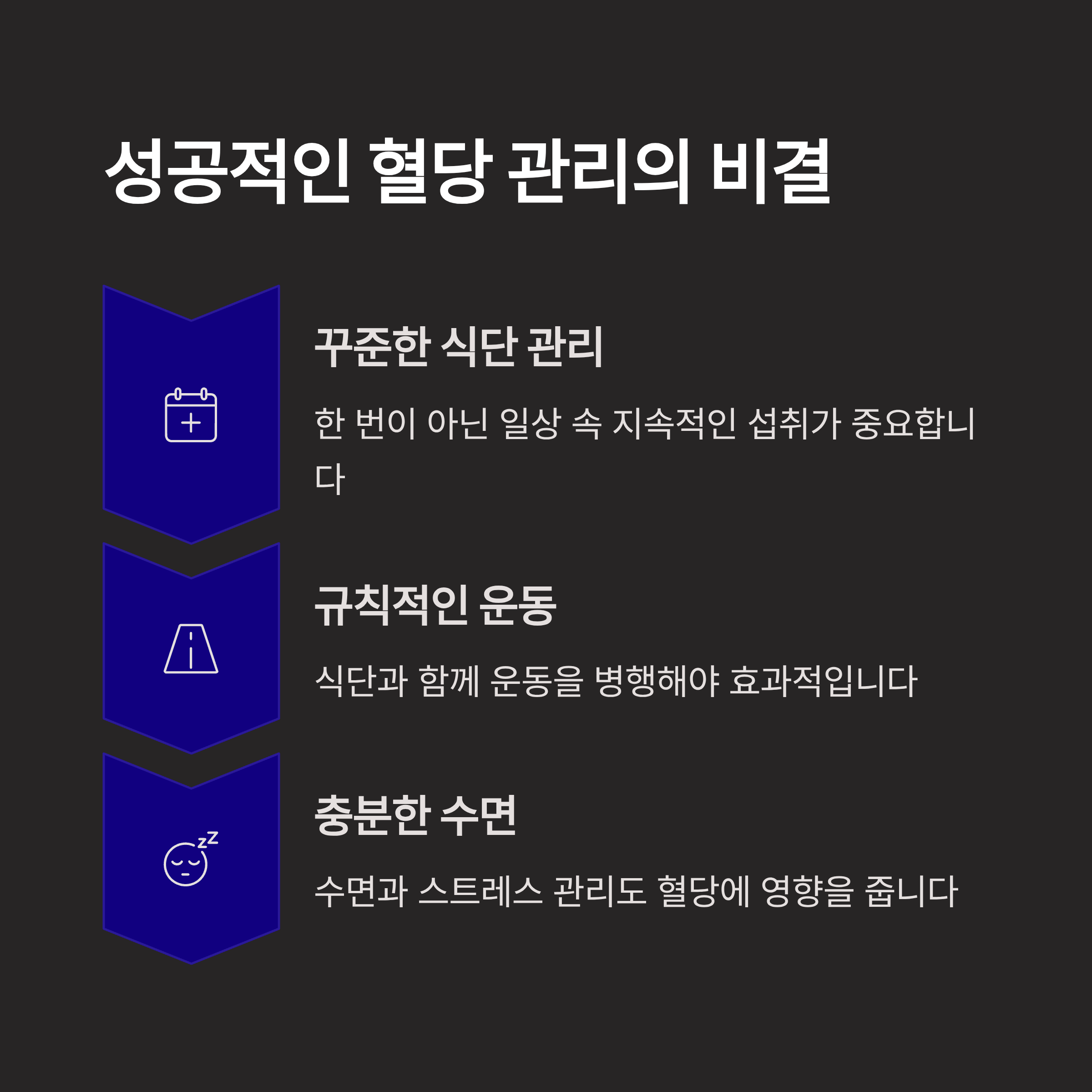 꾸준한 섭취와 올바른 식습관이 혈당 관리의 핵심입니다.