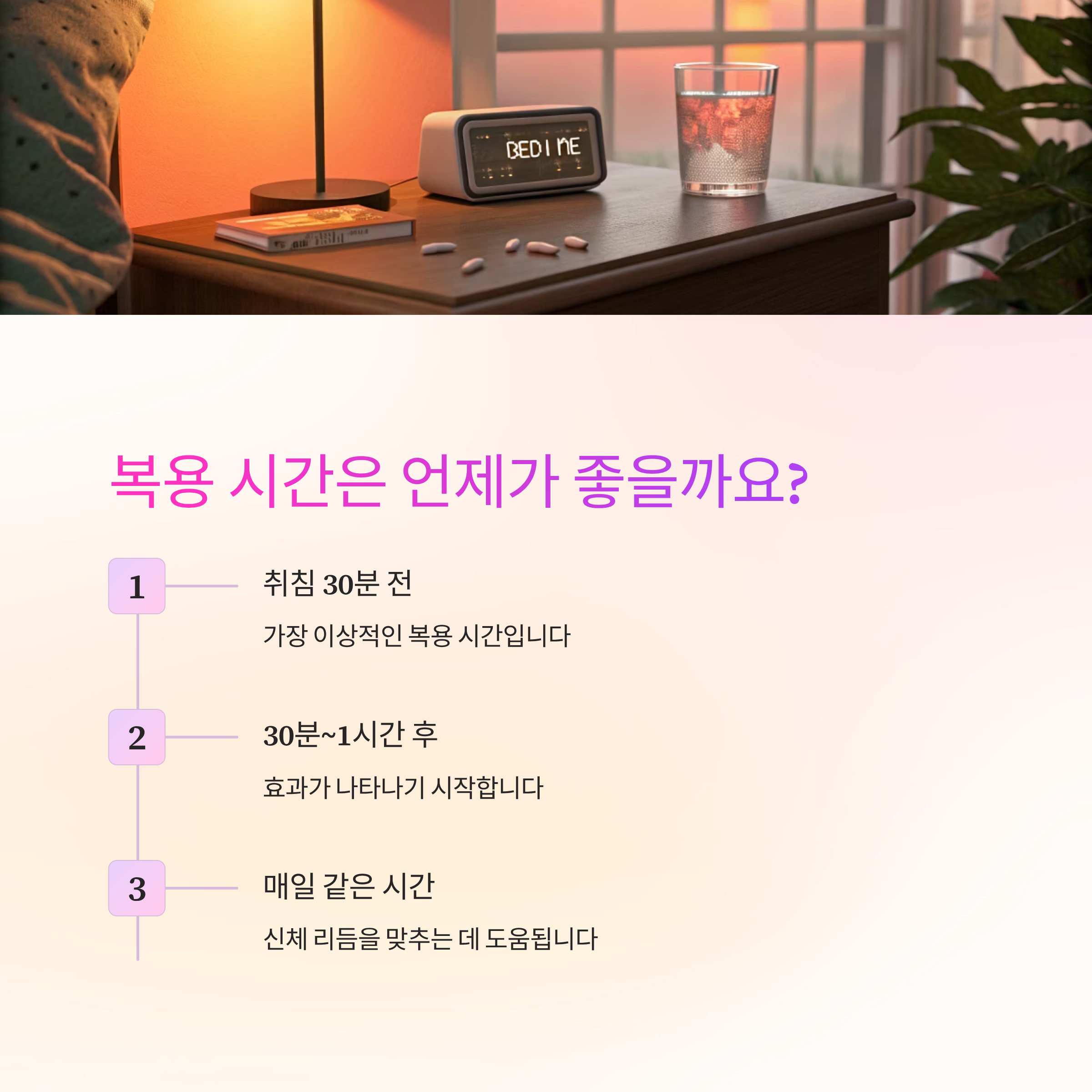 🕒 복용 시간은 ‘잠들기 30분 전’이 기준