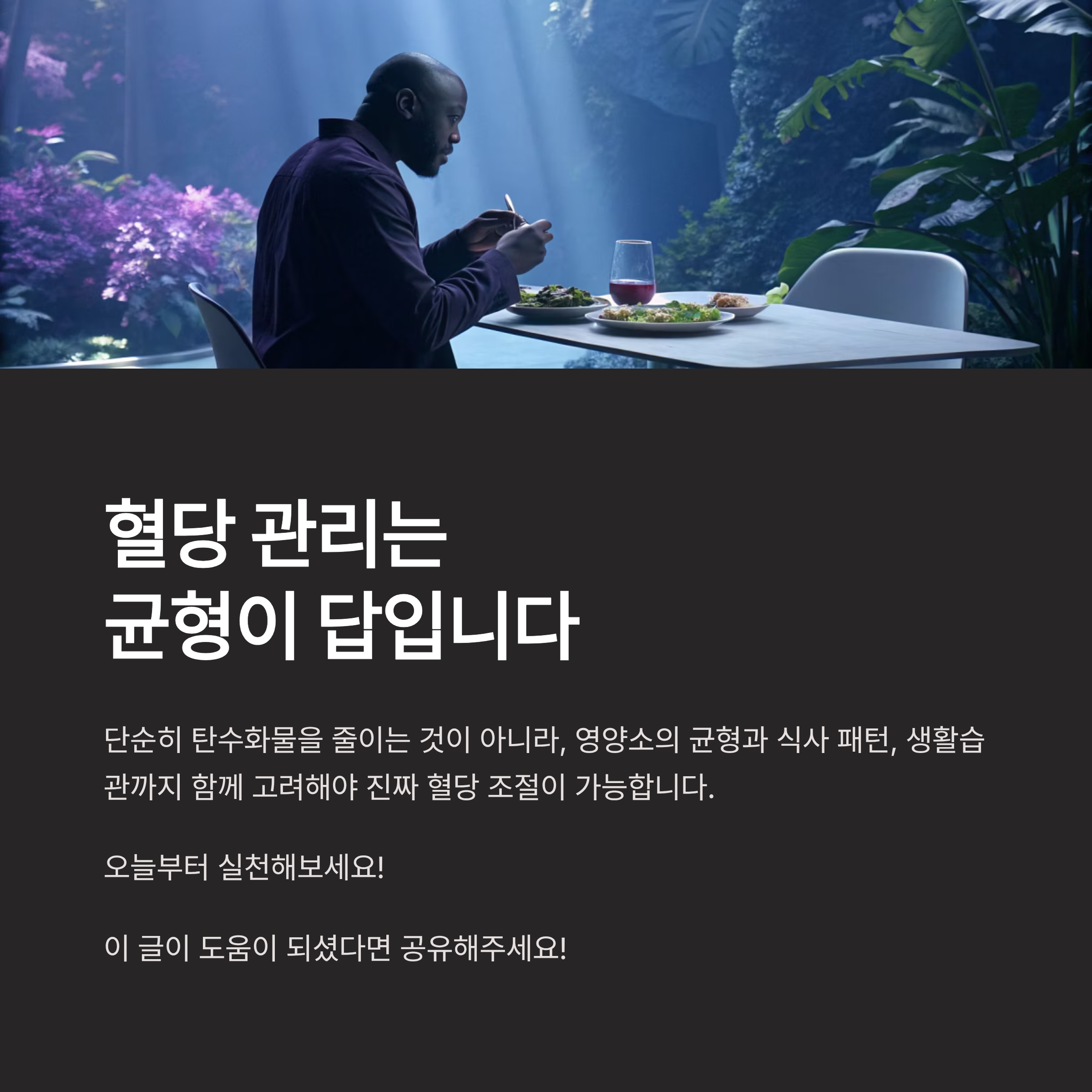 식단만이 전부가 아니라는 이야기죠. 건강한 생활습관이 함께 병행되어야 진짜 조절이 가능합니다.