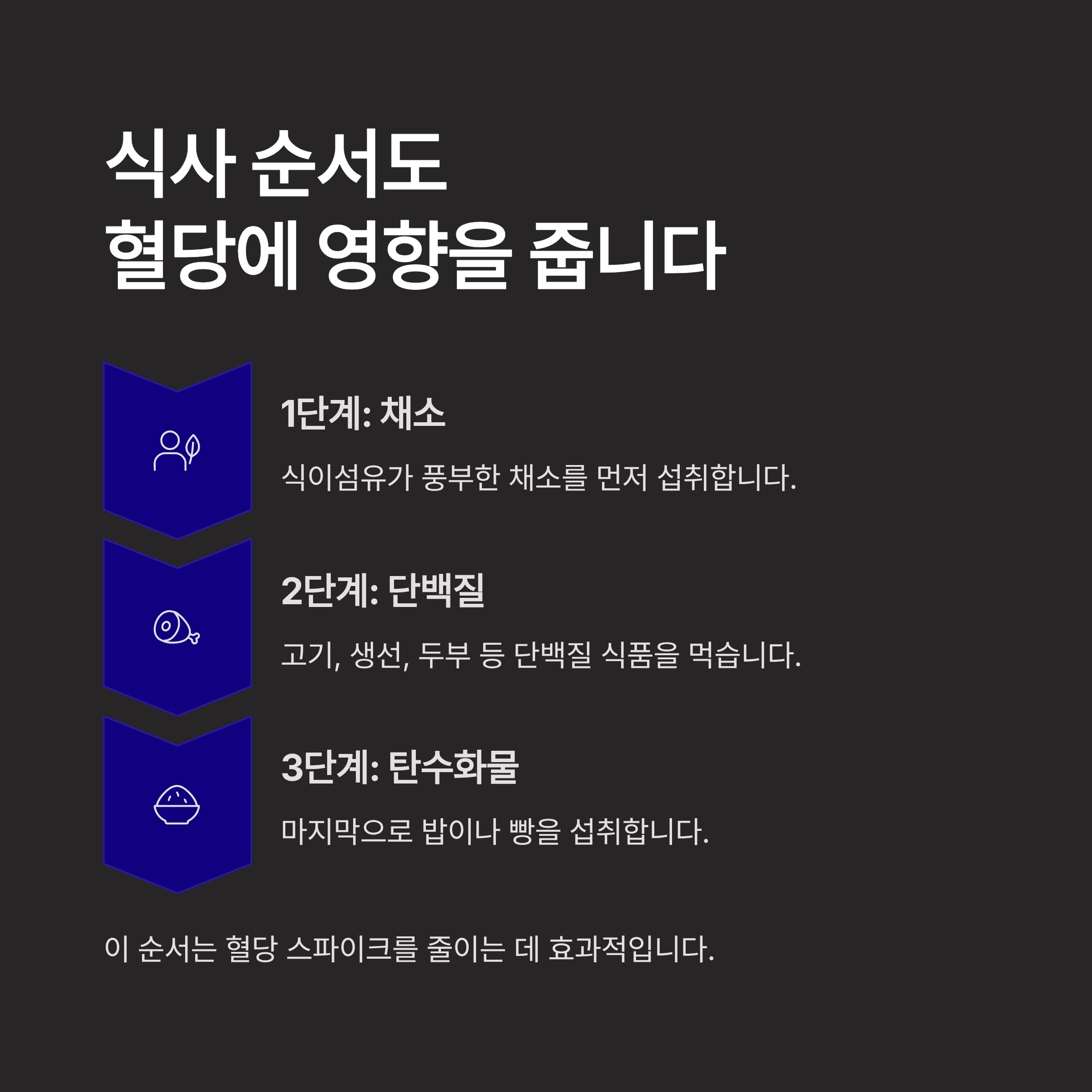 | 식사 순서 | 혈당 급증 방지 | 채소부터 먹기 실천 |