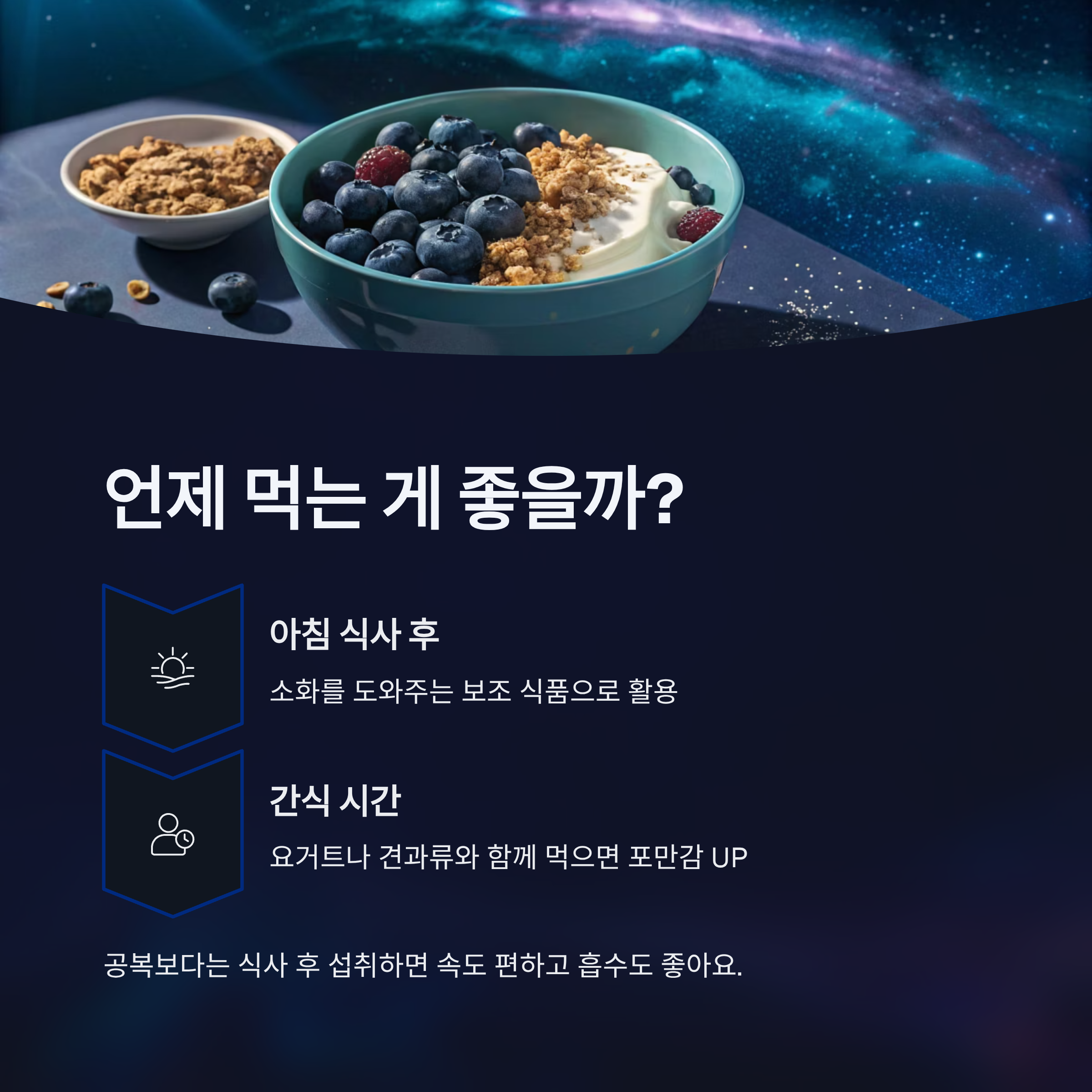 공복보다는 식사 후 소화를 도와주는 보조 식품처럼 활용하면 속도 편하고 흡수도 좋아요.