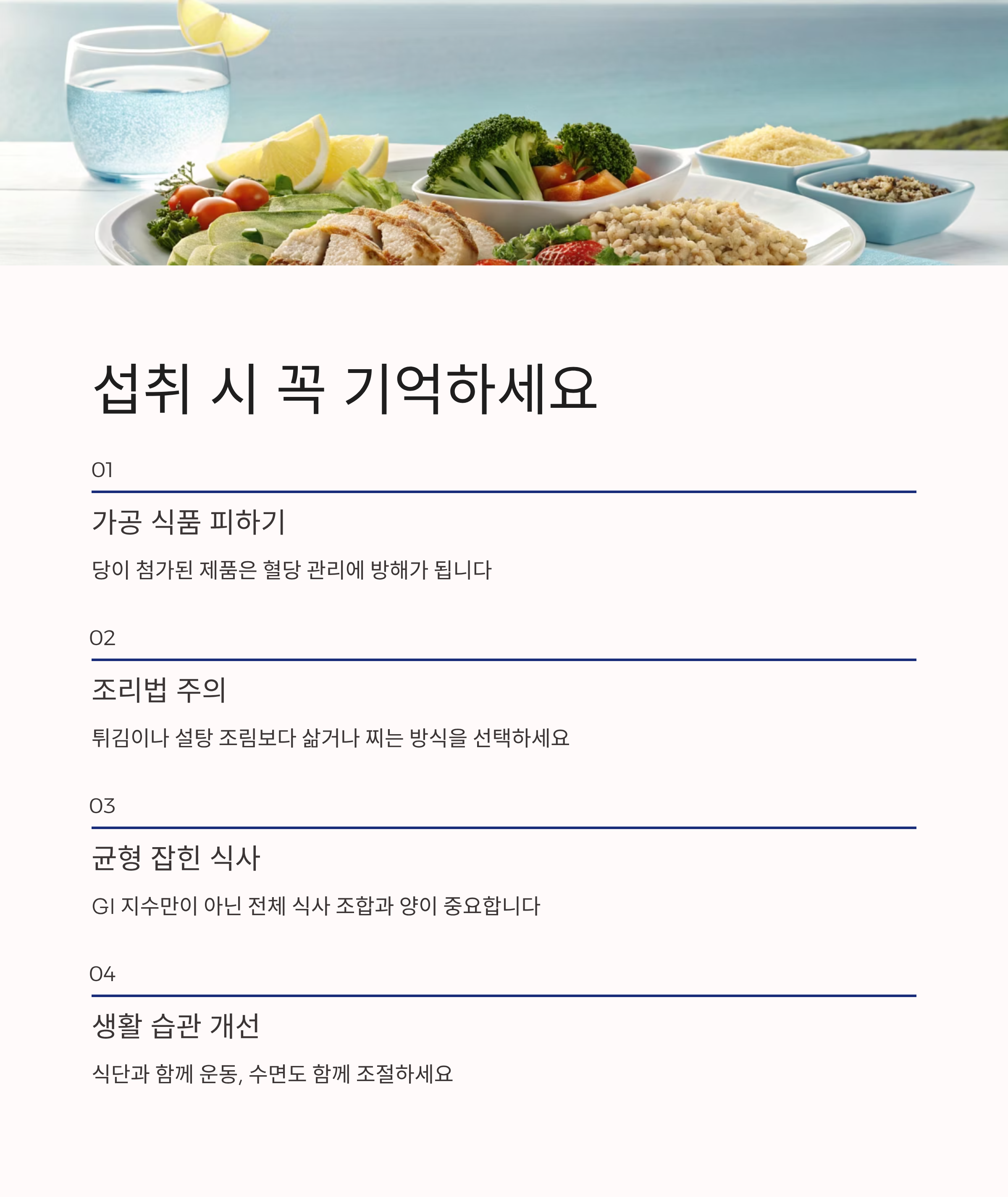 그리고 식사 패턴과 운동, 수면까지 함께 조절해주는 것이 전체적인 혈당 밸런스를 맞추는 데 더 효과적입니다.