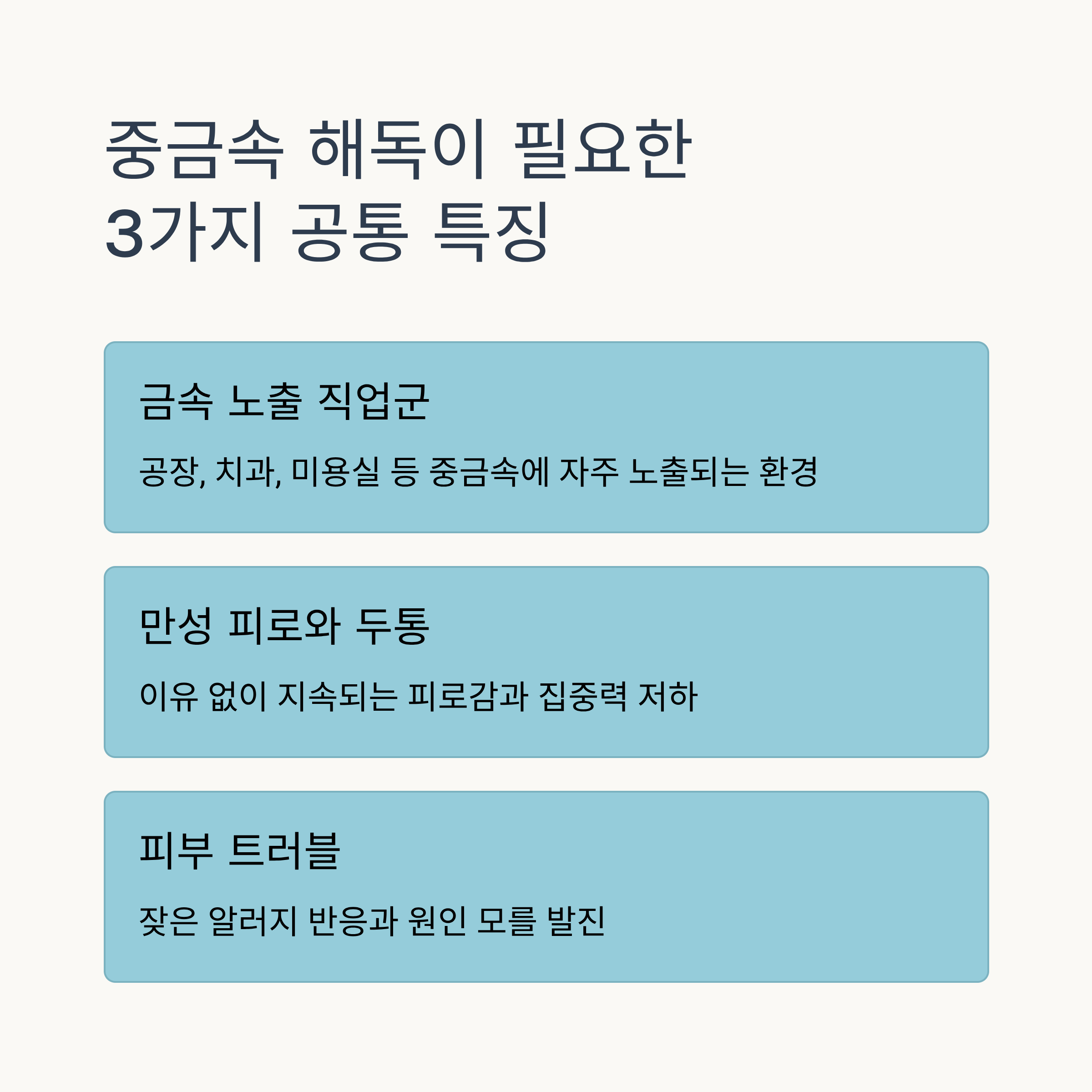 사소해 보여도 반복된다면, 내 몸이 중금속 축적이라는 신호를 보내고 있는 것일 수 있어요.