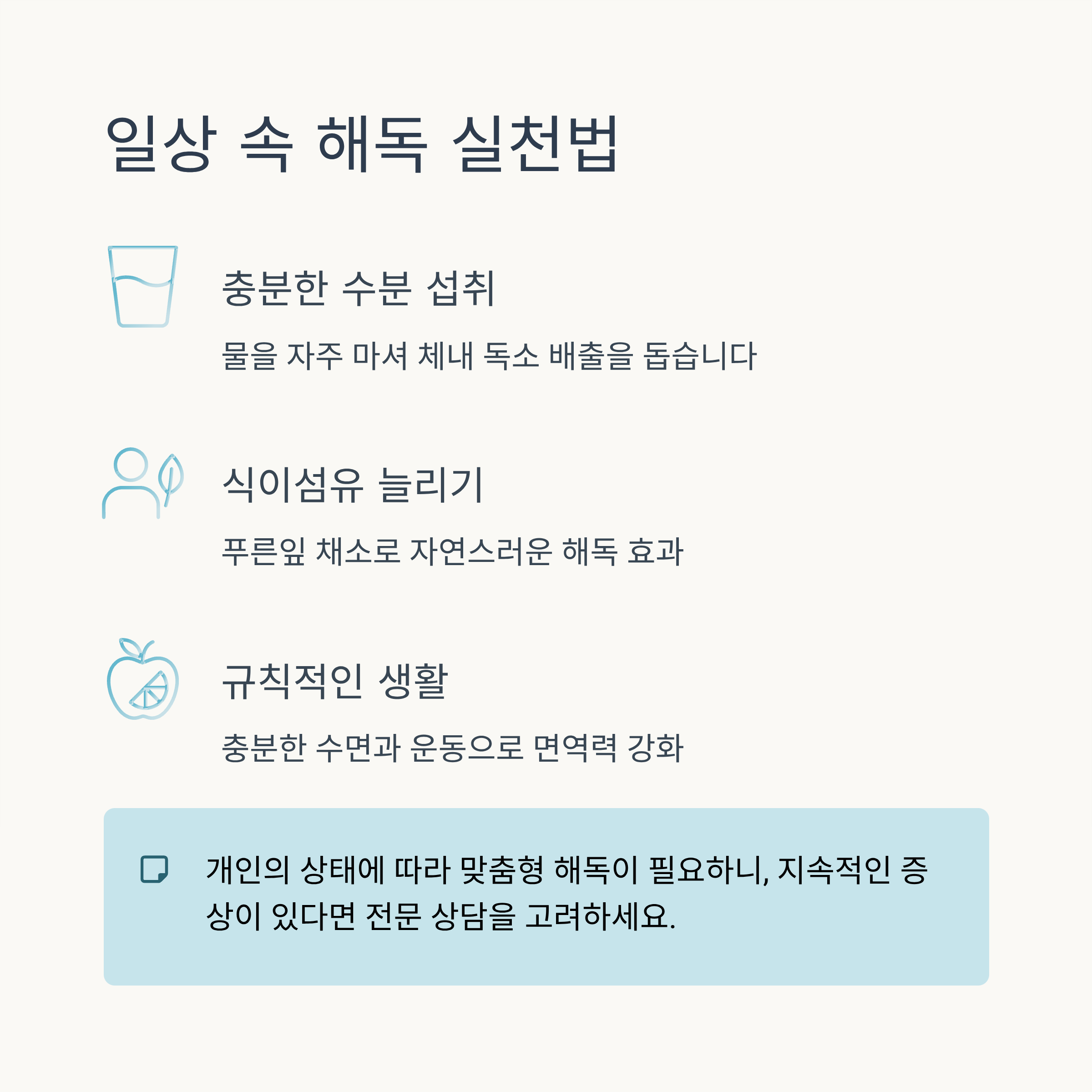 해독은 한 번에 끝내는 것이 아니라, 꾸준한 관리가 필요한 과정입니다.