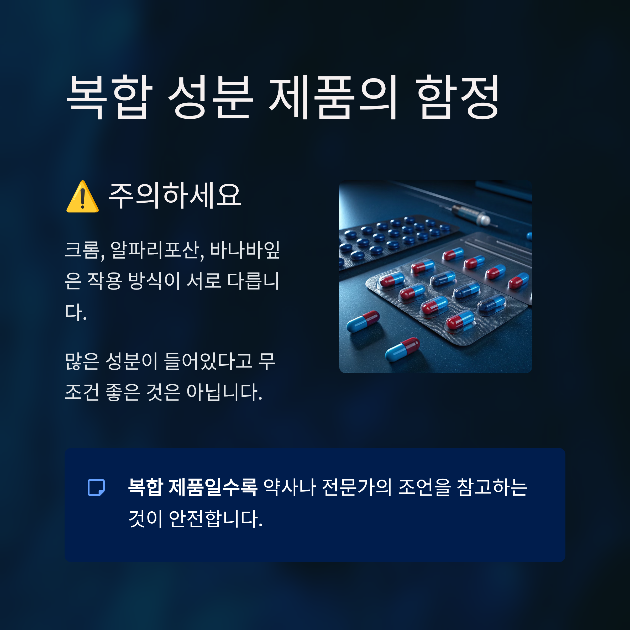 복합 성분 제품일수록 주의가 필요해요