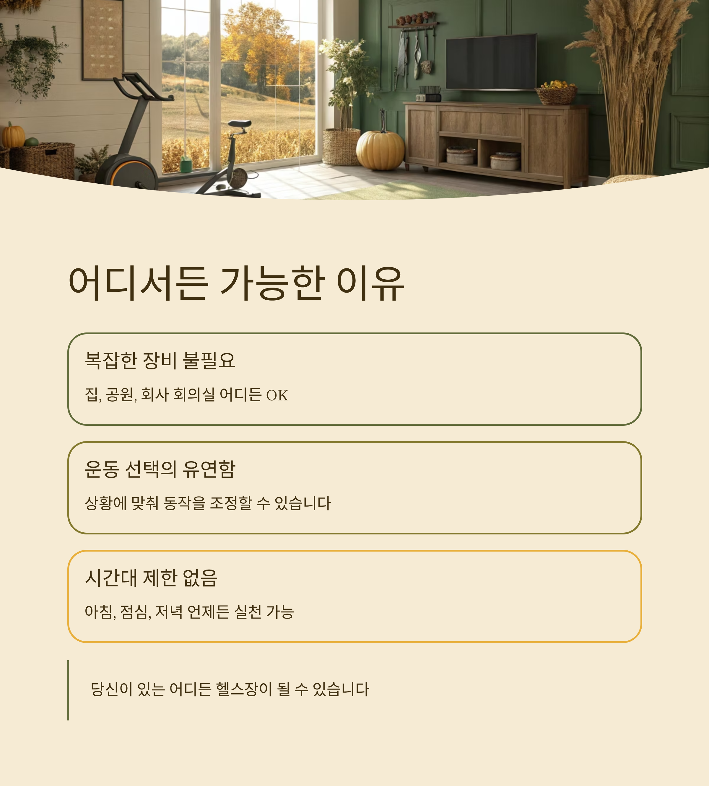 당신이 있는 어디든 헬스장이 될 수 있다는 것이에요.