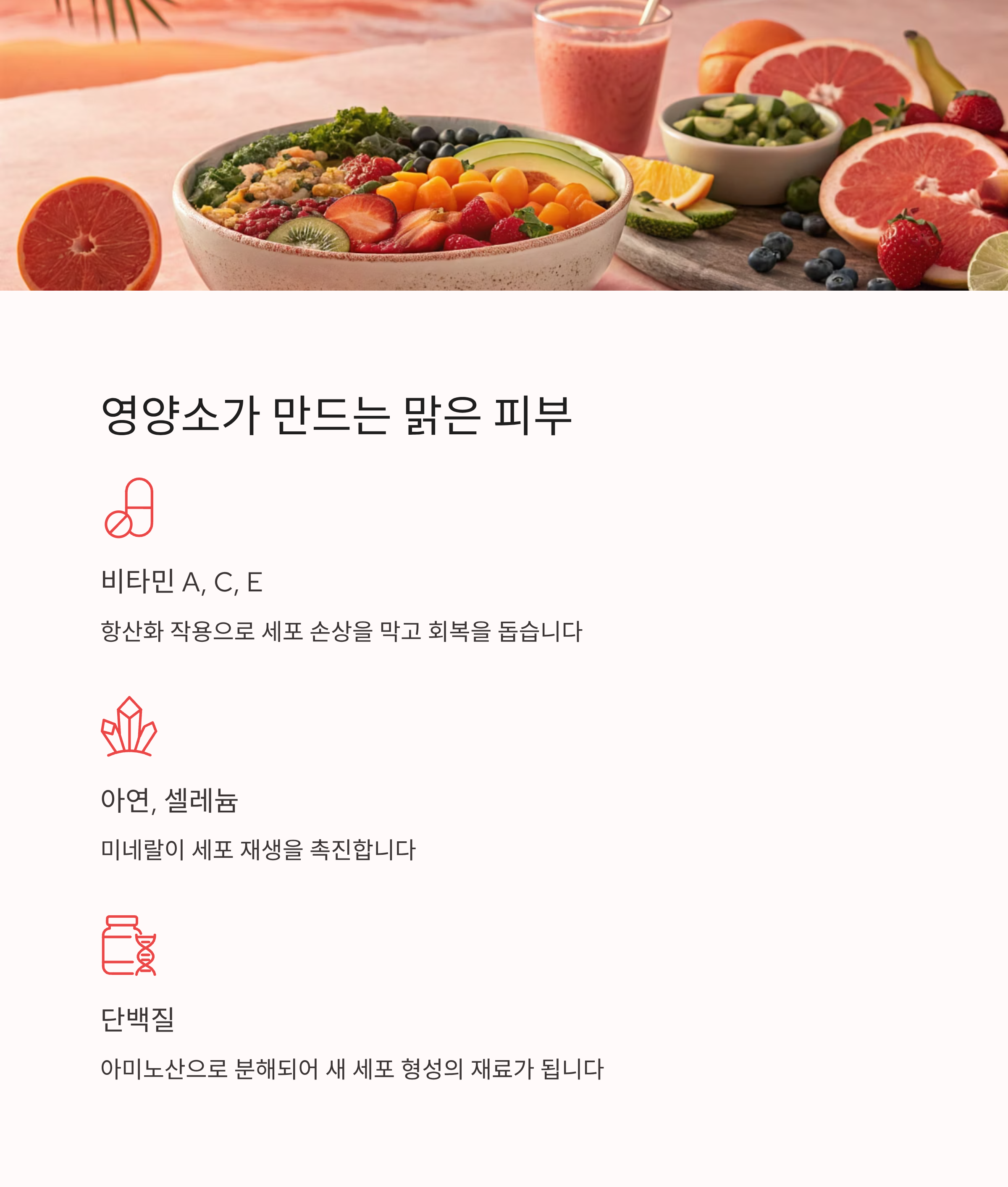 내부 영양이 튼튼해야 외부 스킨케어의 효과도 극대화됩니다.