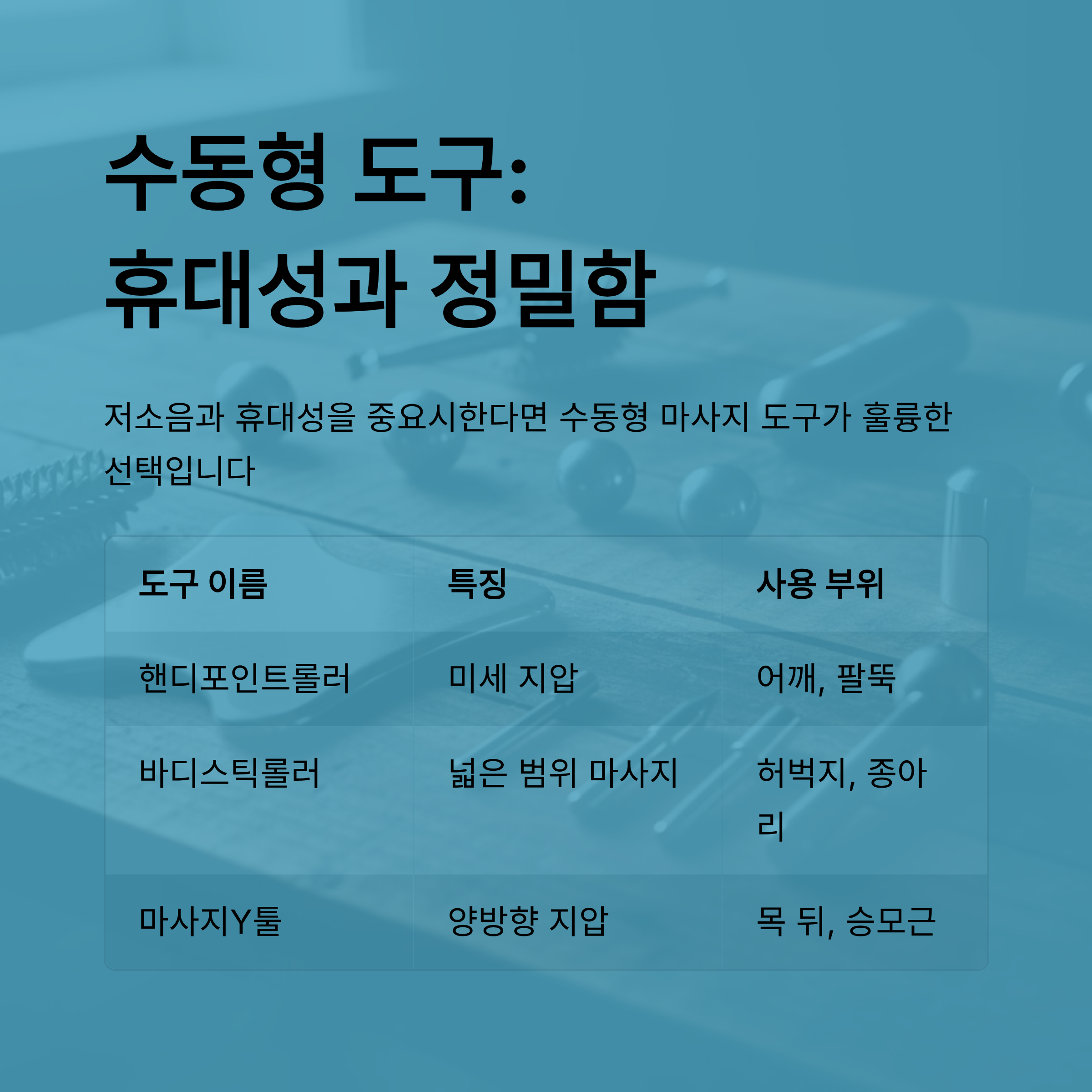 휴대성과 저소음을 중요시한다면, 수동형 마사지 도구도 훌륭한 선택입니다.