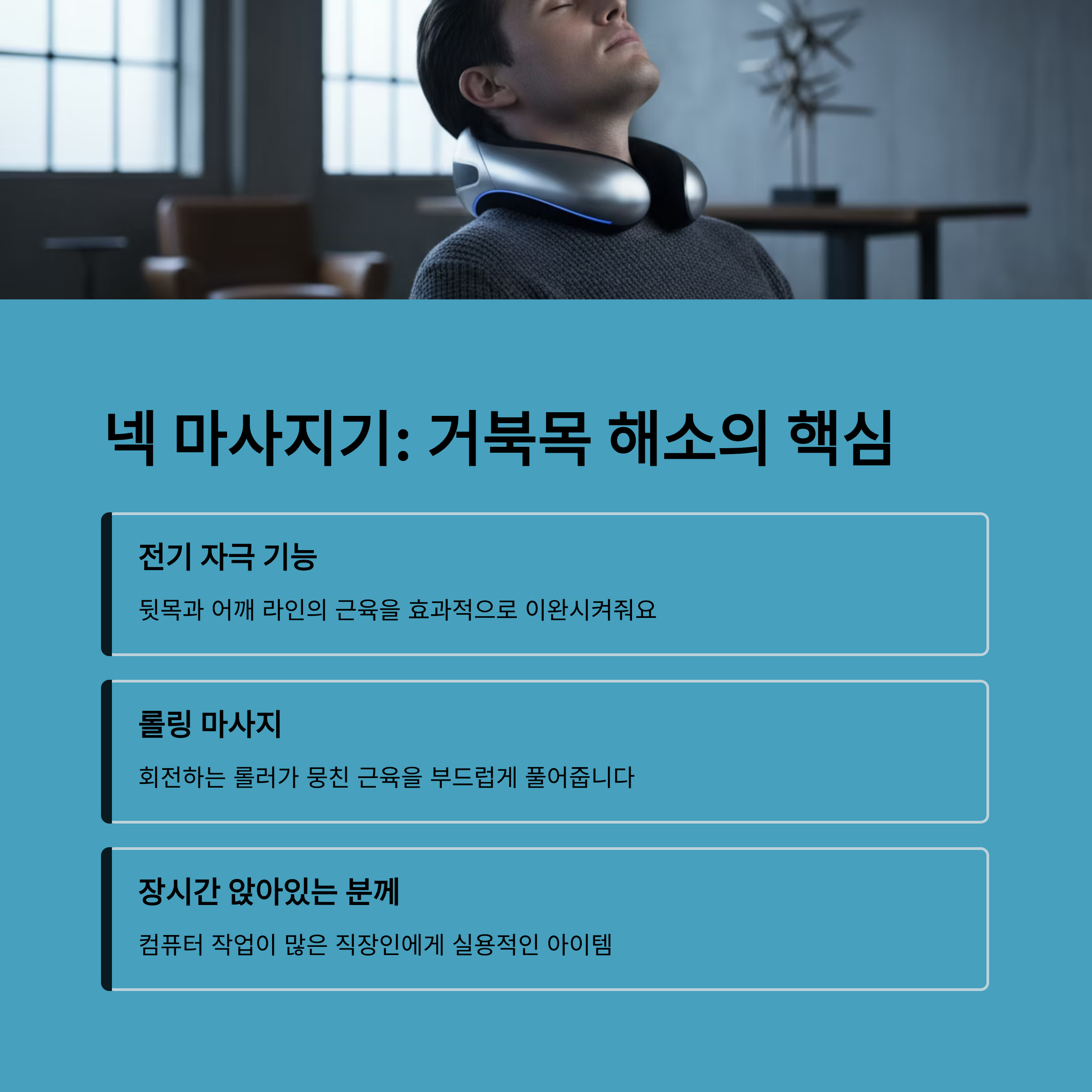 넥 마사지기, 거북목과 뒷목 뻐근함 해소