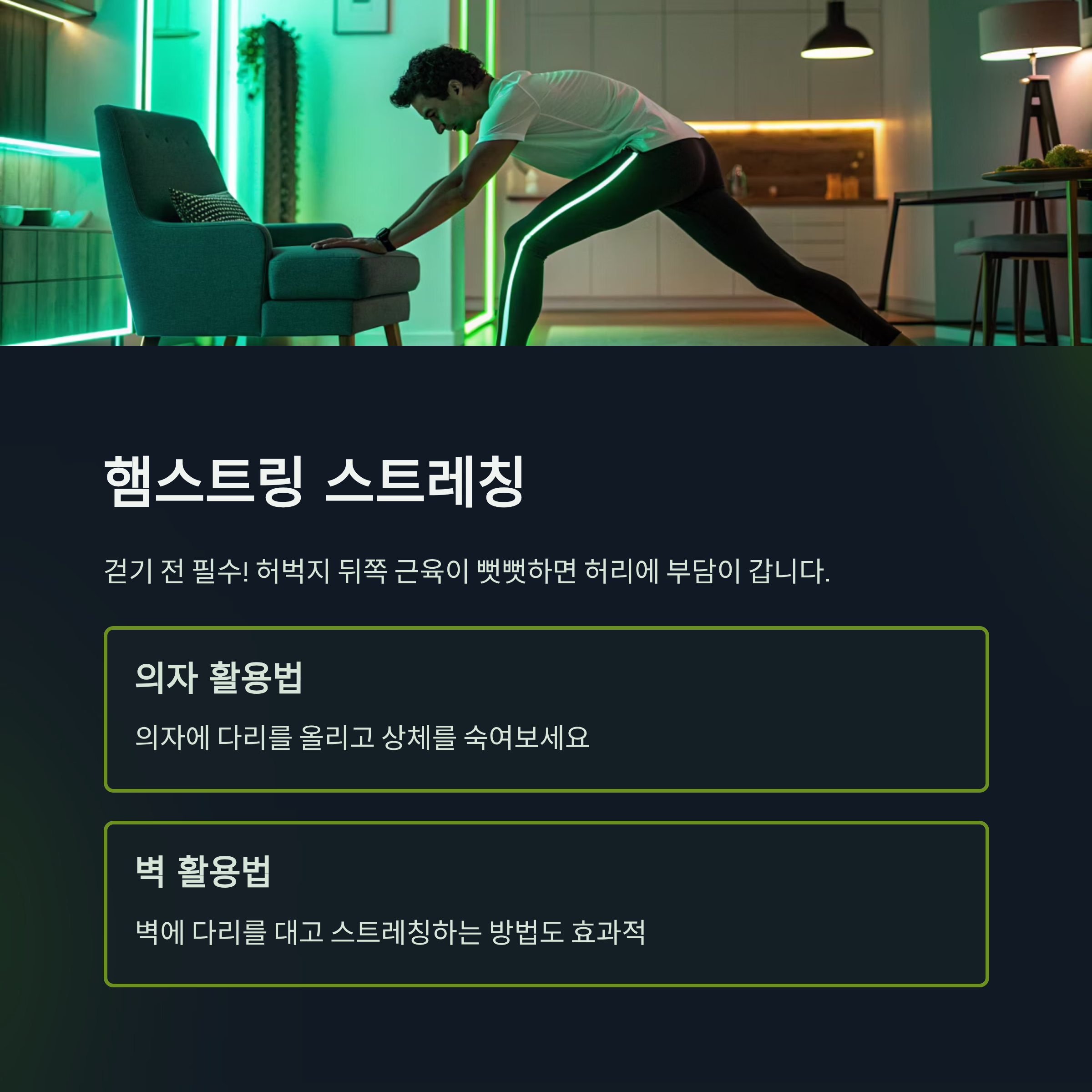 | 햄스트링 스트레칭 | 30초씩 양쪽 | 중간 |