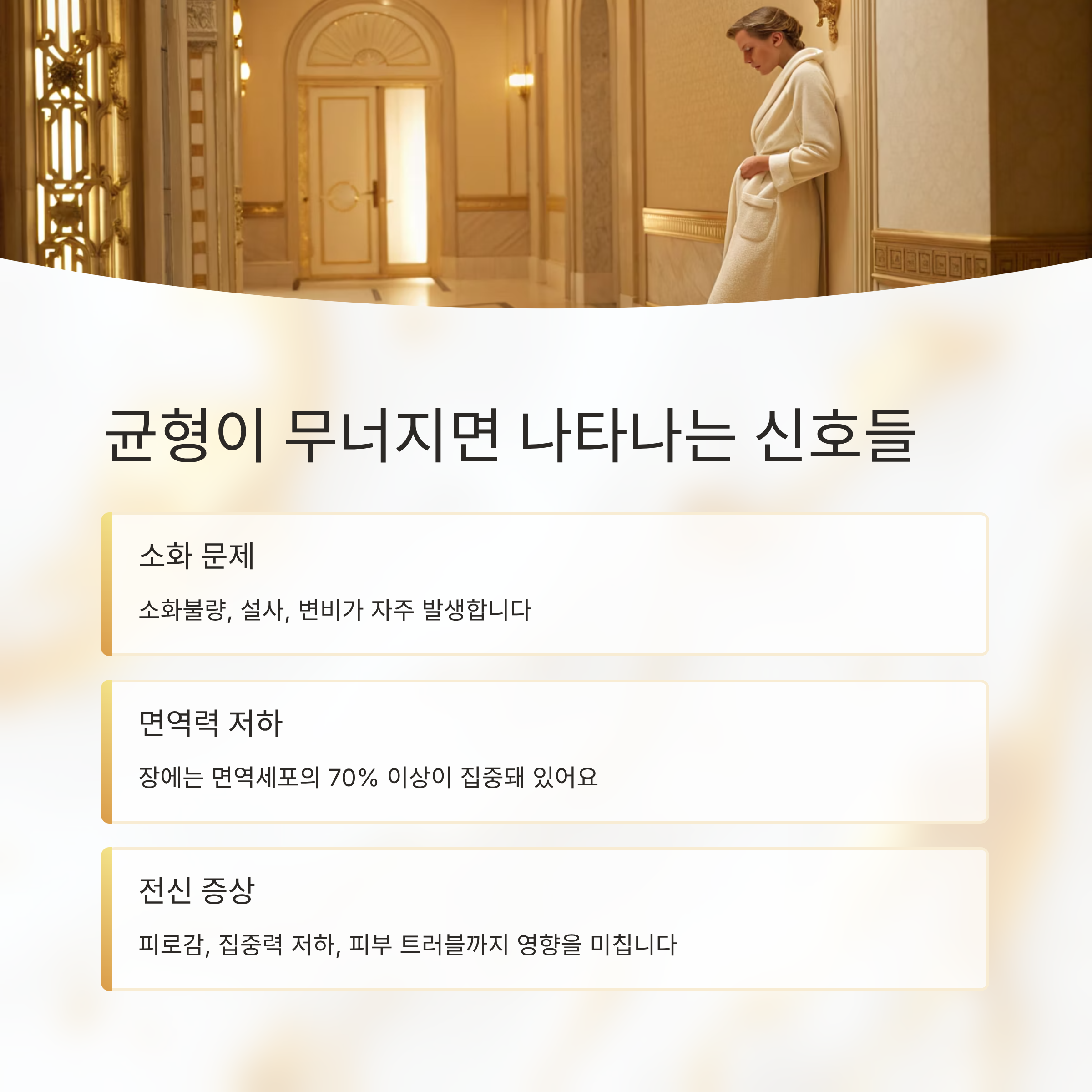 장내 미생물의 불균형은 단순한 소화불량을 넘어서 피로감, 집중력 저하, 피부 트러블, 면역 저하로 이어질 수 있습니다. 특히 장은 면역세포의 70% 이상이 모여 있는 기관이기 때문에, 장 건강은 곧 면역력과 직결됩니다.