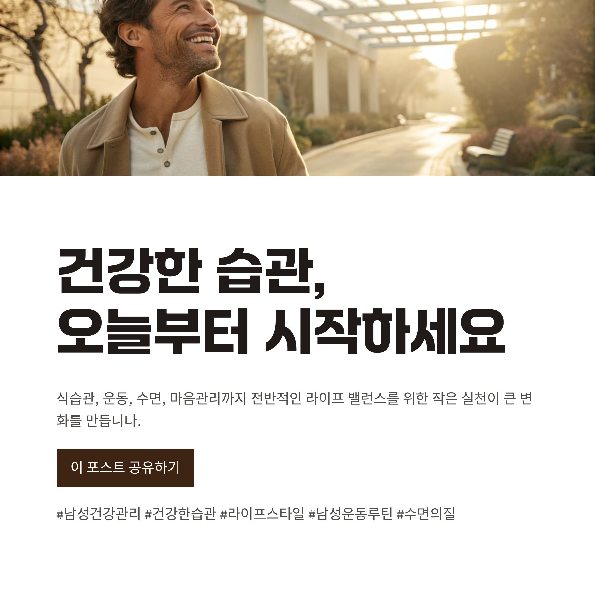 운동, 식습관, 수면, 마음관리 — 이 네 가지를 꾸준히 관리하면 활력 있는 일상이 가능합니다.