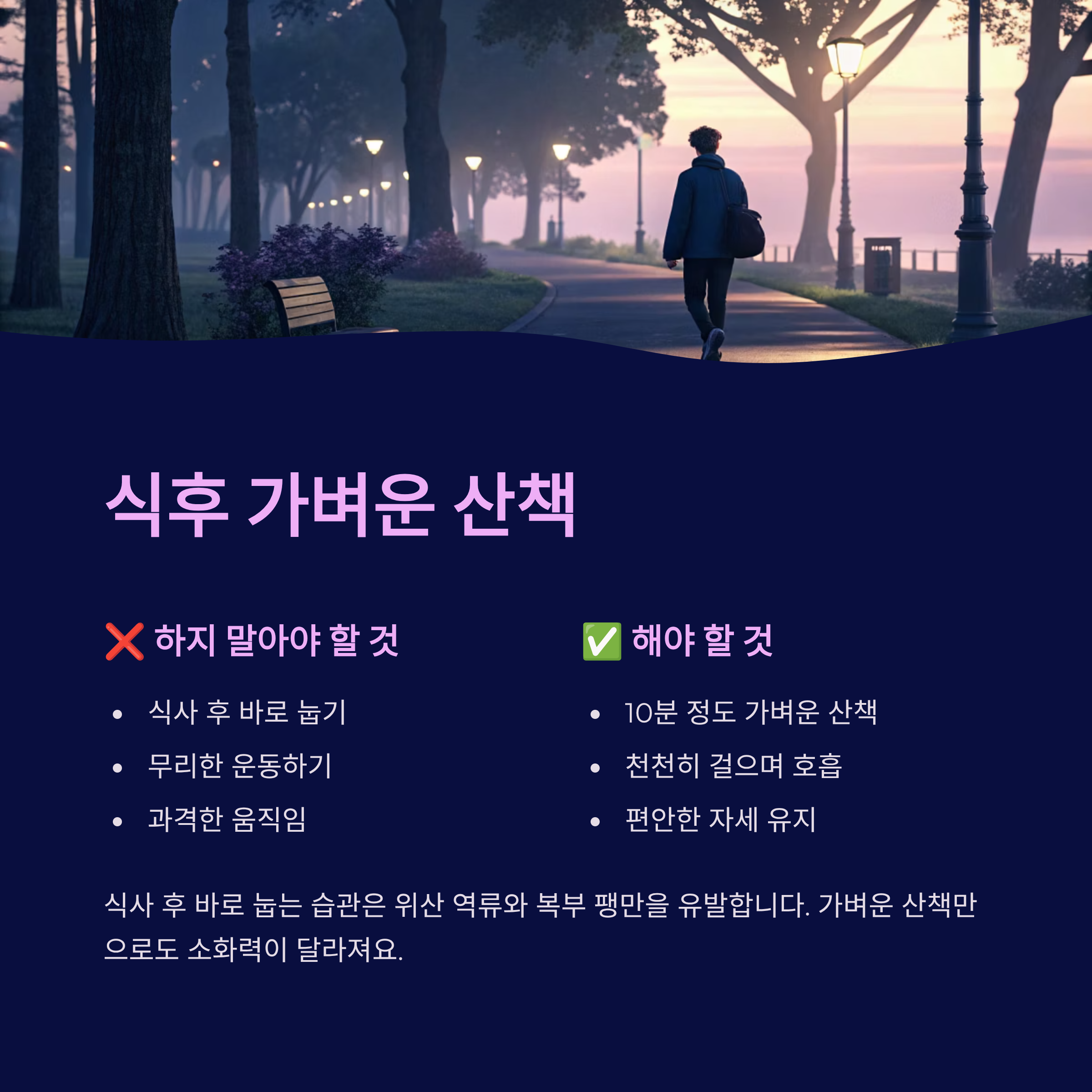 가볍게 10분 정도 산책하는 습관만으로도 소화력이 달라집니다.
