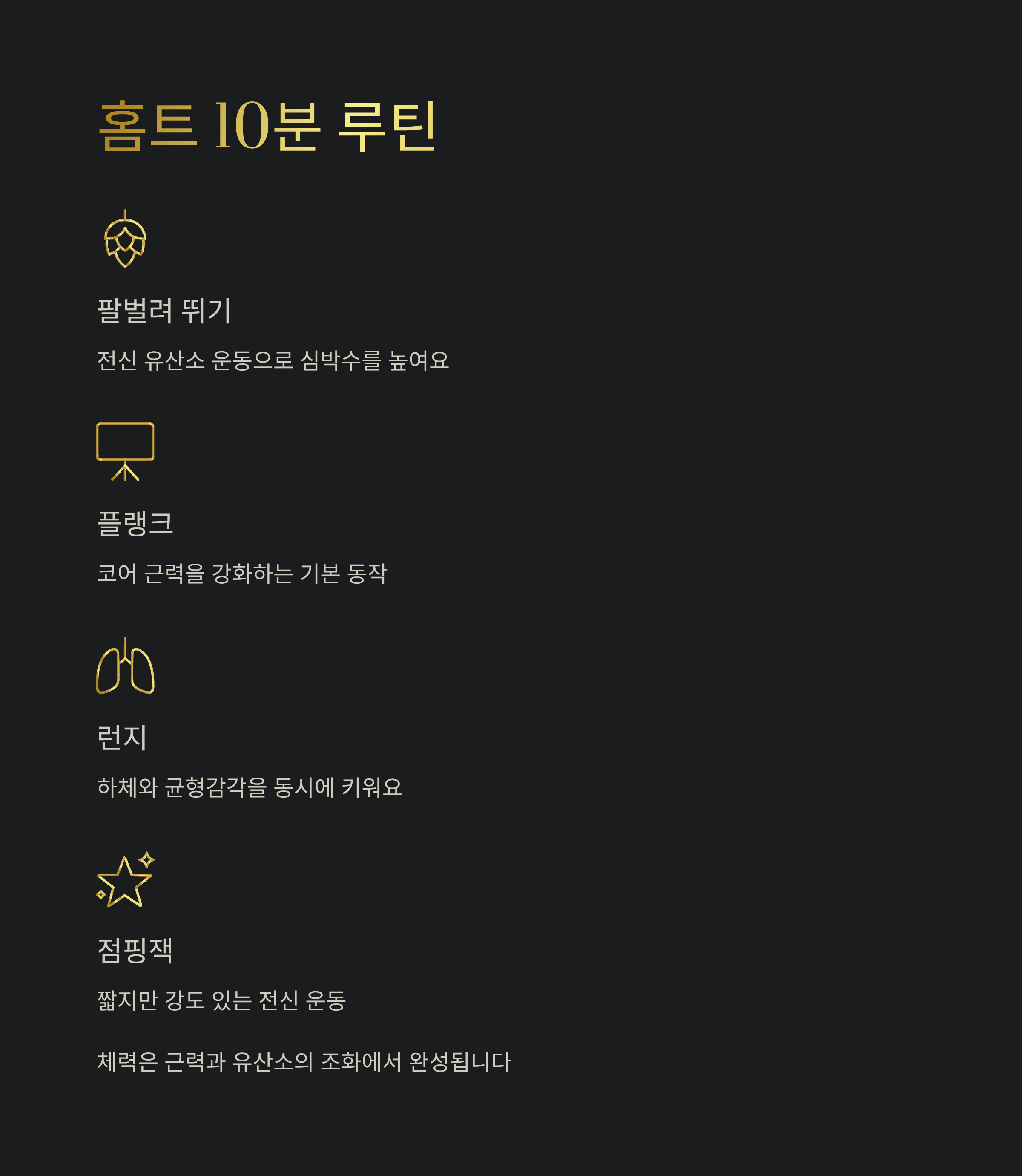 루틴이 쌓이면 어느 순간 ‘지치지 않는 몸’이 되어 있을 거예요.