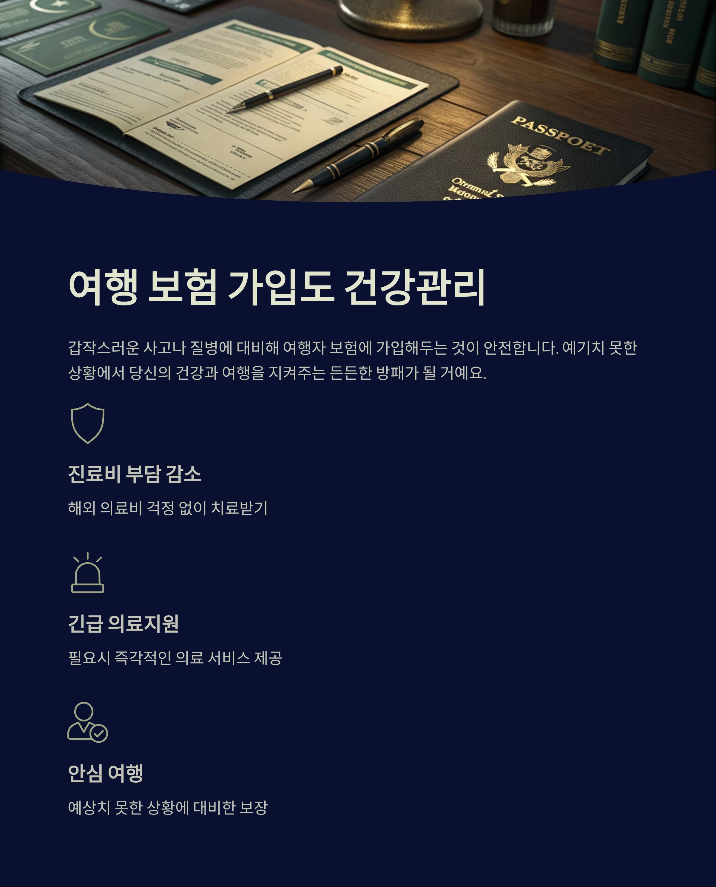 예기치 못한 상황에서 당신의 건강과 여행을 지켜주는 든든한 방패가 될 거예요.