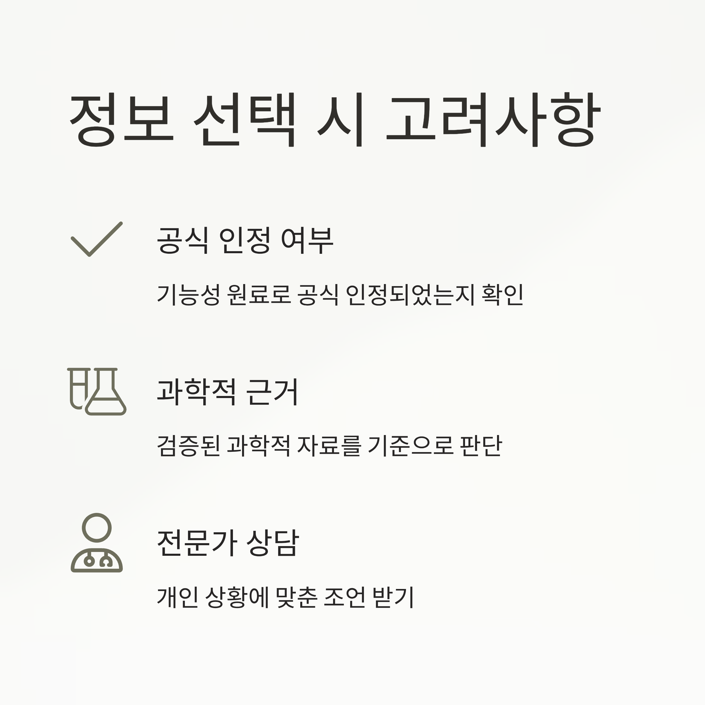 여러 정보가 혼재되어 혼란스러울 수 있지만, 공식적으로 인정된 기능성 여부와 과학적 근거를 기준으로 걸러보면 조금 더 명확해집니다. 필요하다면 전문가 상담을 통해 개인 상황에 맞춘 조언을 받는 것도 좋은 방법이에요.