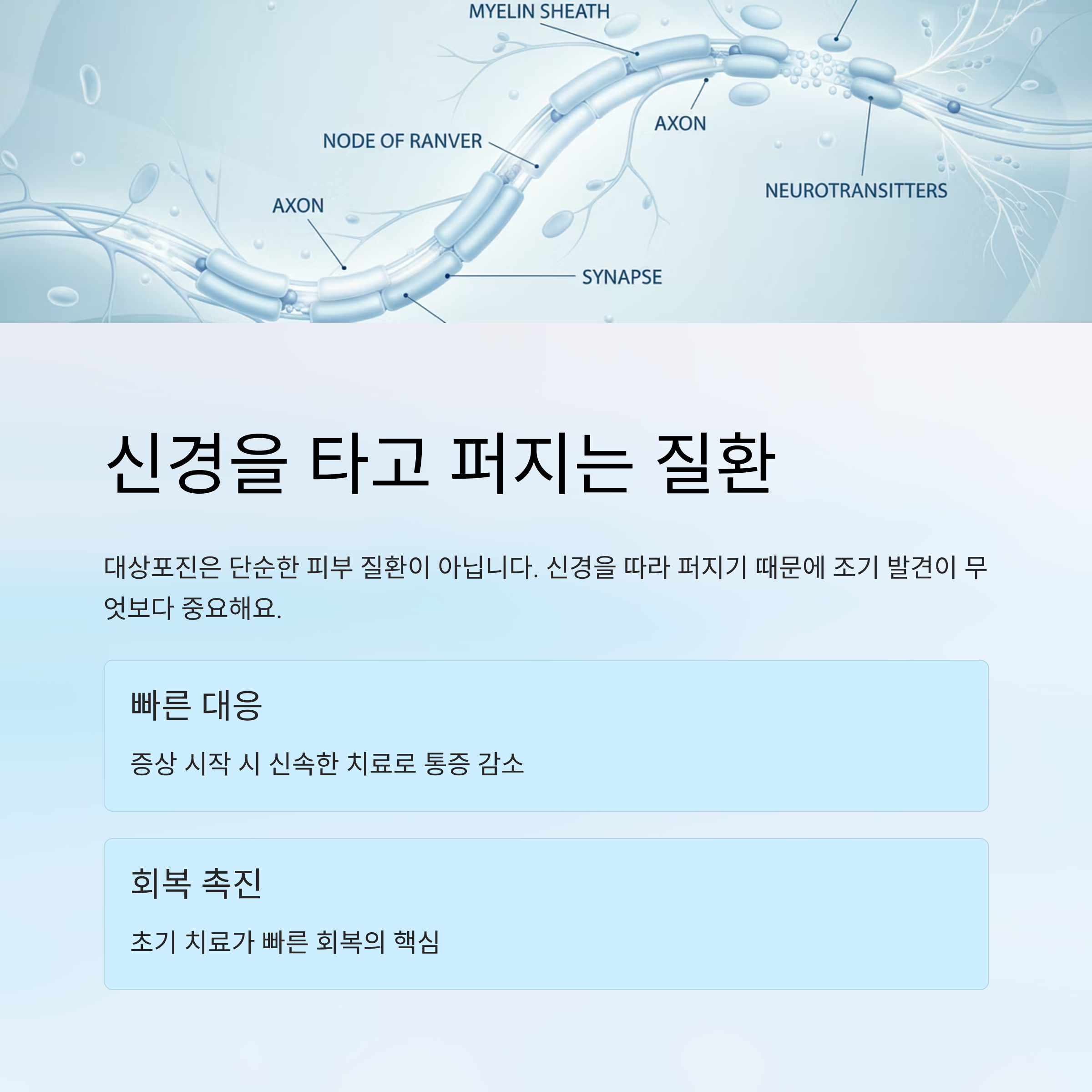 대상포진은 피부보다 신경에 먼저 영향을 줍니다.