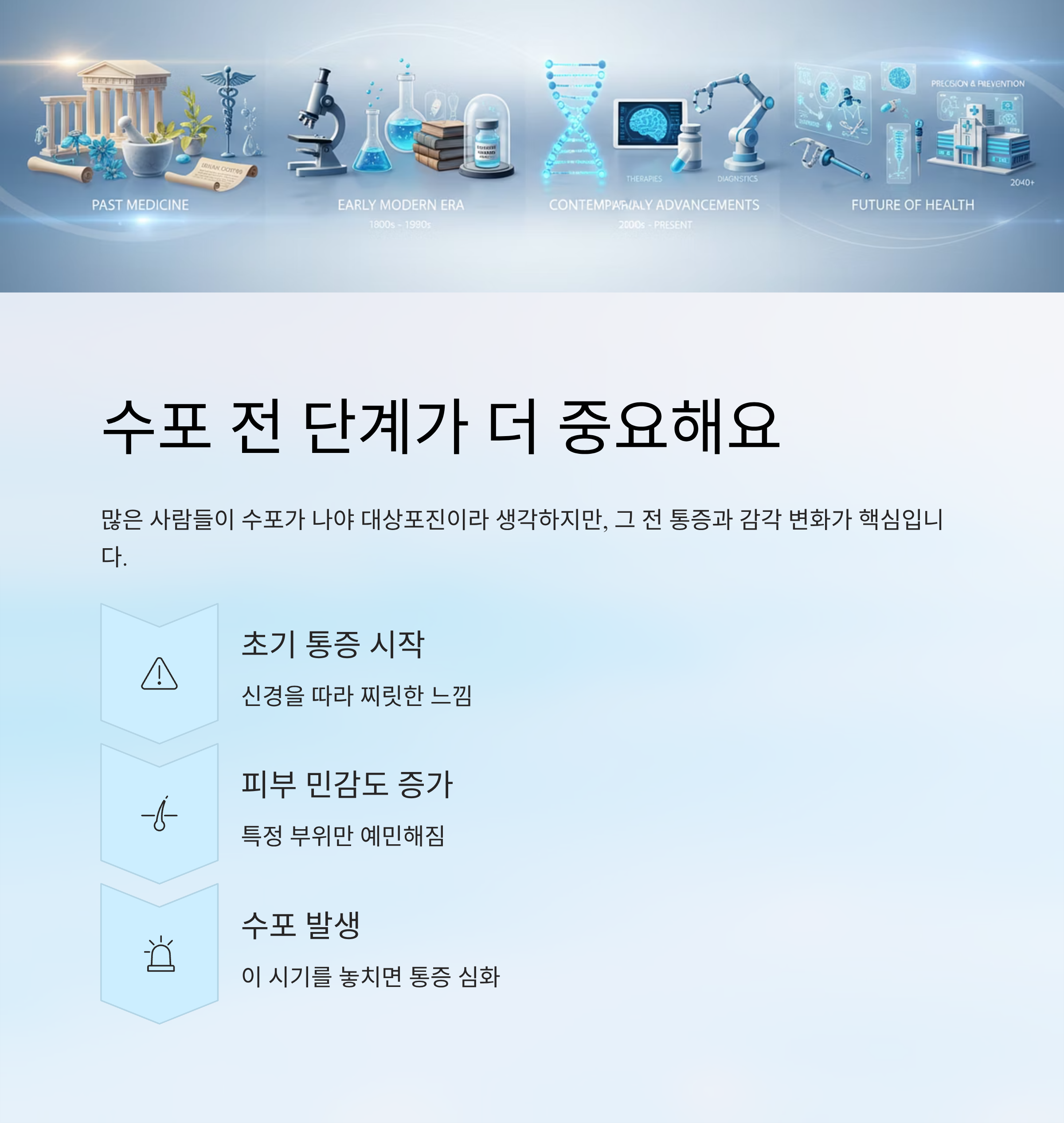 사실 그 전에 나타나는 통증과 감각 변화가 핵심입니다.