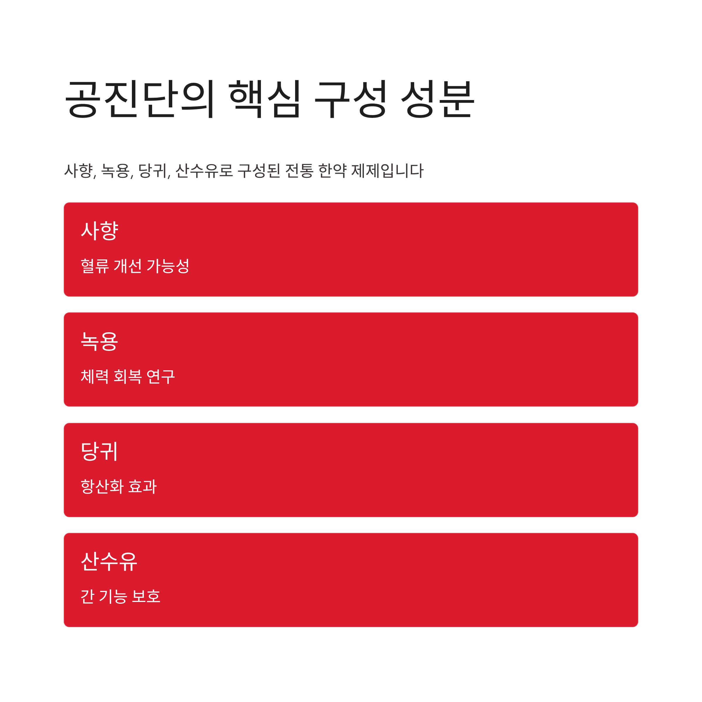 공진단은 예로부터 귀한 한약재를 조합해 만든 보약으로 잘 알려져 있습니다. 하지만 과연 그 효능이 과학적으로도 입증됐는지 궁금하신 분들이 많을 텐데요. 오늘은 공진단의 대표적인 구성 성분과 이를 바탕으로 한 과학적 연구와 검증된 효능에 대해 명확하게 정리해드립니다.