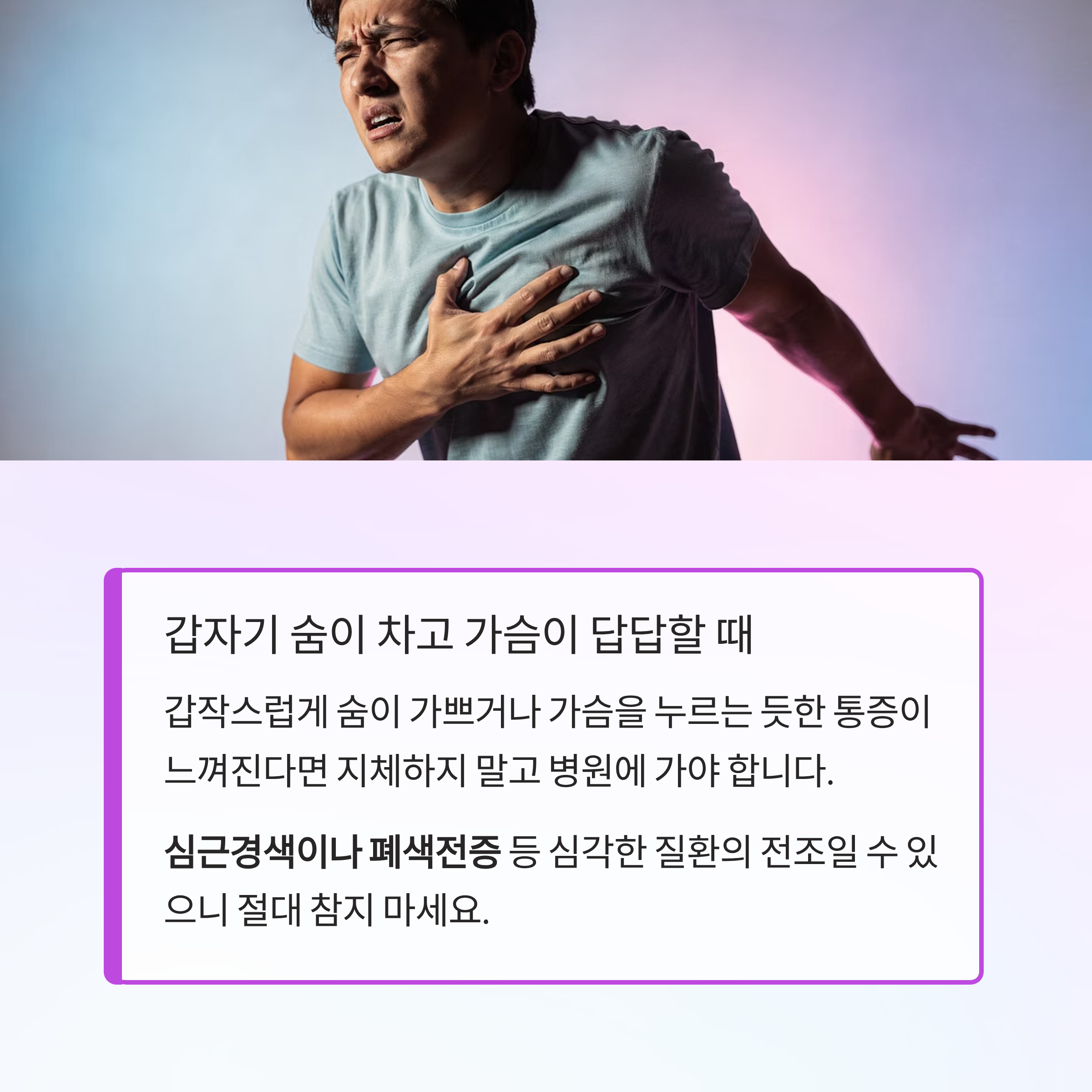 갑작스럽게 숨이 가쁘거나 가슴을 누르는 듯한 통증이 느껴진다면