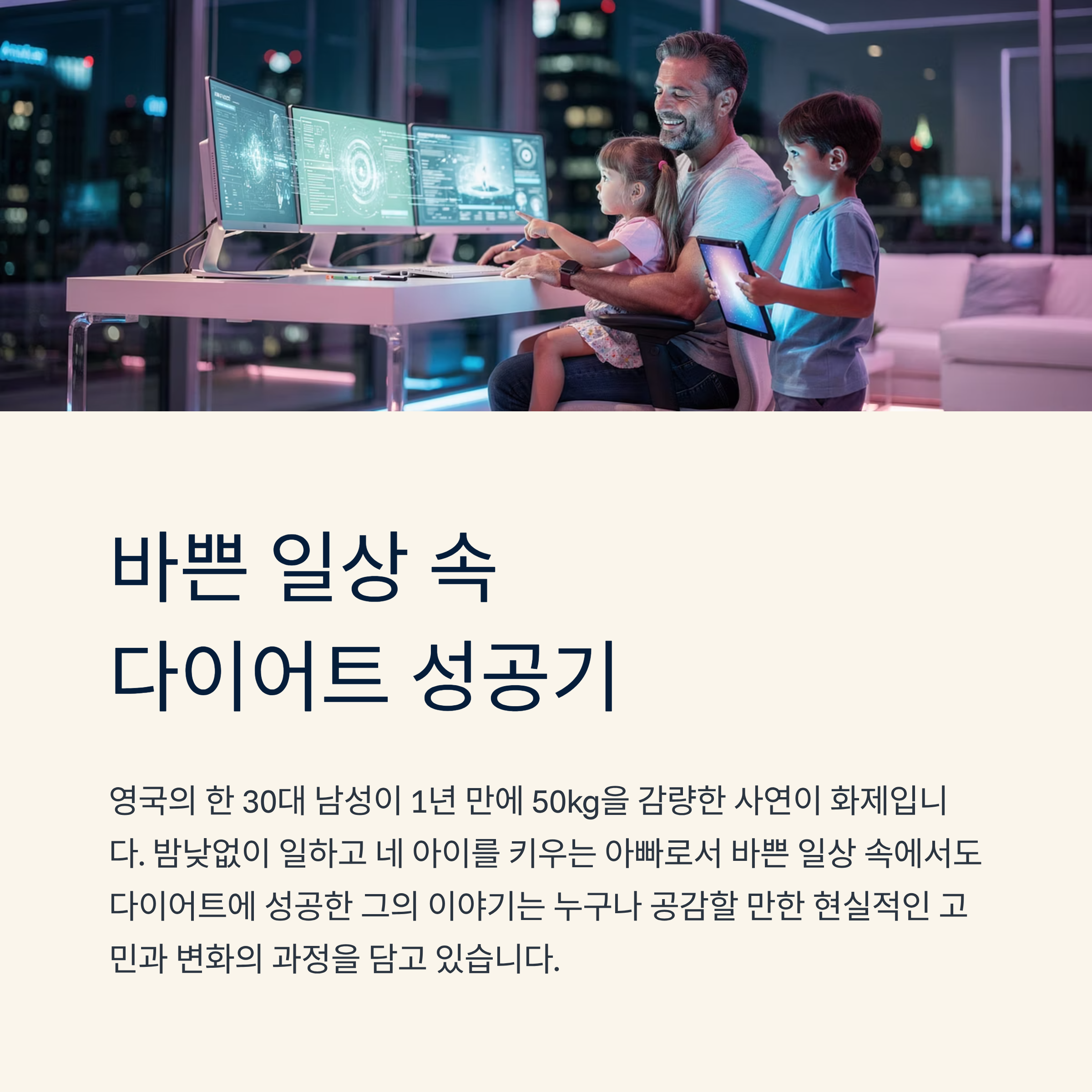 영국의 한 30대 남성이 무려 1년 만에 50kg을 감량한 사연이 알려지며 많은 이들의 관심을 모으고 있습니다. 밤낮 없이 일하고 네 아이를 키우는 아빠로서 바쁜 일상 속에서도 다이어트에 성공한 그의 이야기는 누구나 공감할 만한 현실적인 고민과 변화의 과정을 담고 있는데요. 이번 글에서는 그의 변화 포인트와 실제 실천 방법들을 중심으로 건강한 감량 습관에 대해 알아보겠습니다.
