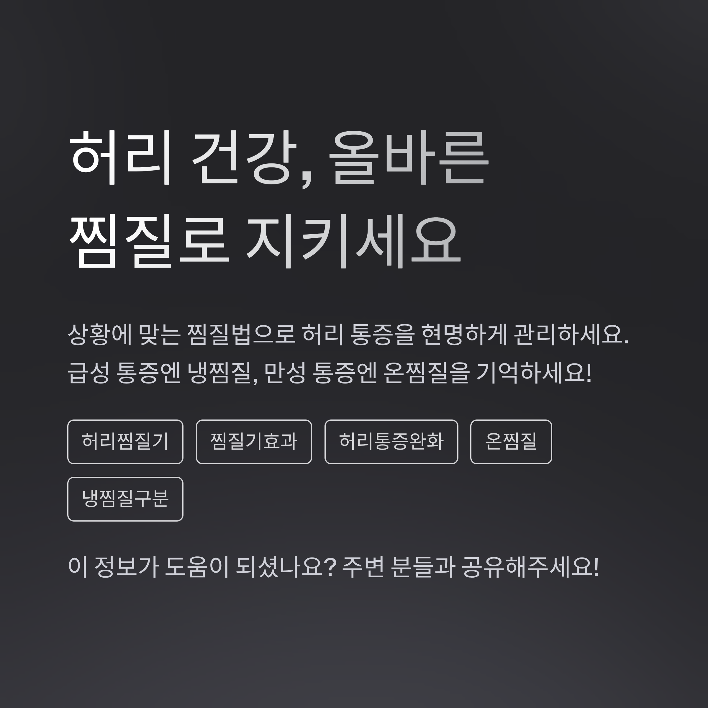 허리가 아플 때 찜질기를 찾는 분들 많으시죠? 따뜻하게 해주면 다 좋아질 것 같지만, 사실 모든 경우에 찜질이 효과적인 건 아닙니다. 허리 통증의 원인에 따라 찜질기의 효과도 천차만별이기 때문에, 무작정 사용하는 것보다 정확한 상황을 아는 것이 중요해요. 이 글에서는 허리찜질기가 효과 있는 경우와 그렇지 않은 경우를 구분해 알려드릴게요.