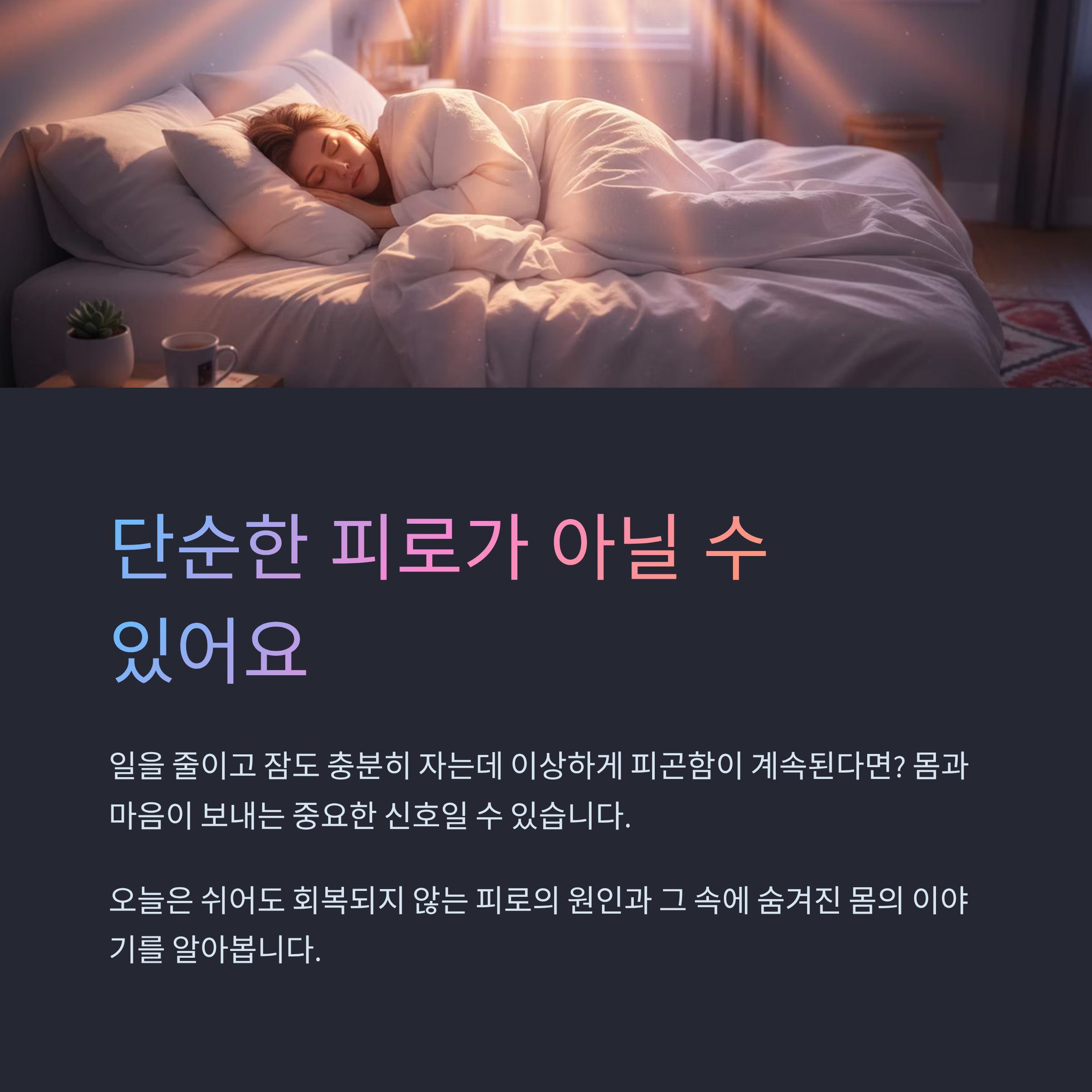 피로를 그냥 참고 넘기지 말고, 나를 돌보는 시간으로 바꿔보세요.