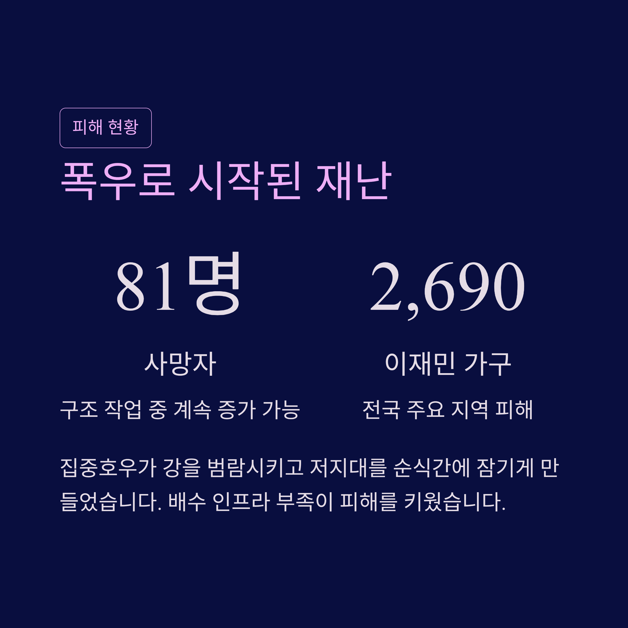 | 주요 원인 | 집중호우 및 배수 인프라 부족 |