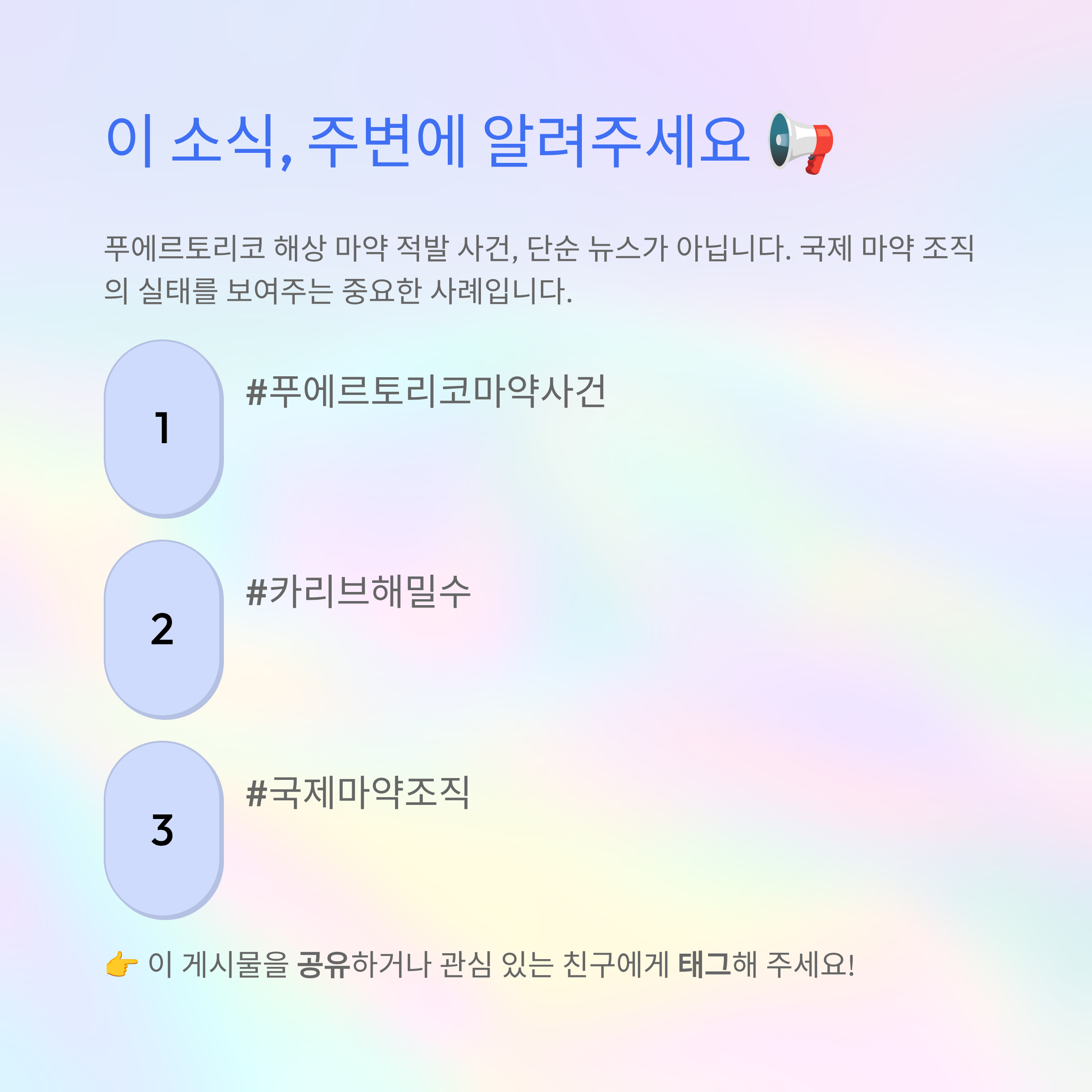 이번 사건은 단순 밀수 적발을 넘어, 푸에르토리코가 왜 국제 마약 운송의 주요 경유지로 언급되는지 다시 한 번 보여주는 사례로 보입니다.