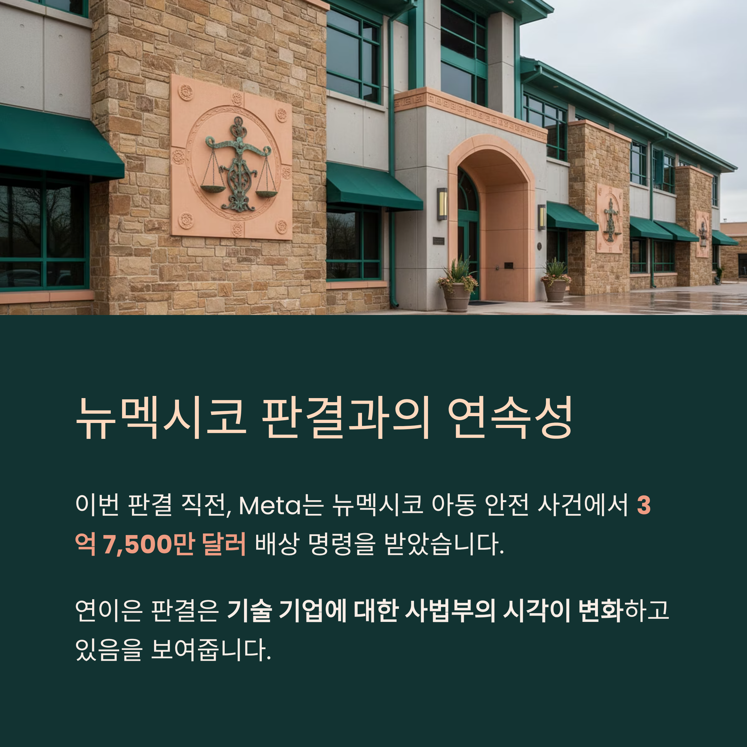 흥미로운 점은 이번 판결 직전에 Meta가 뉴멕시코 아동 안전 사건에서 3억 7천 5백만 달러 배상 명령을 받았다는 사실입니다.