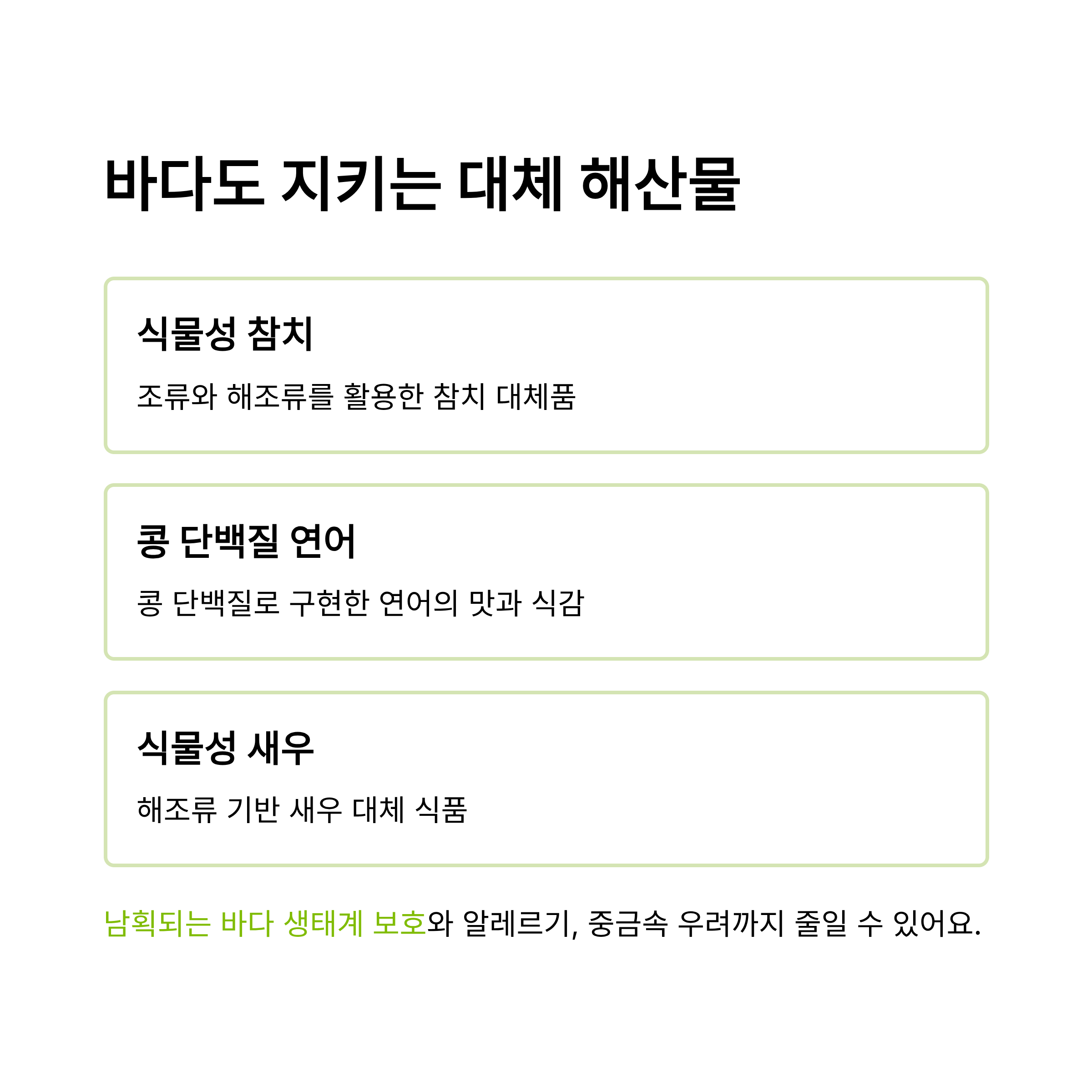 대체 해산물은 참치, 연어, 새우까지 식물성으로 구현하며 바다 생태계 보호와 알레르기 위험 감소라는 장점을 제공합니다.