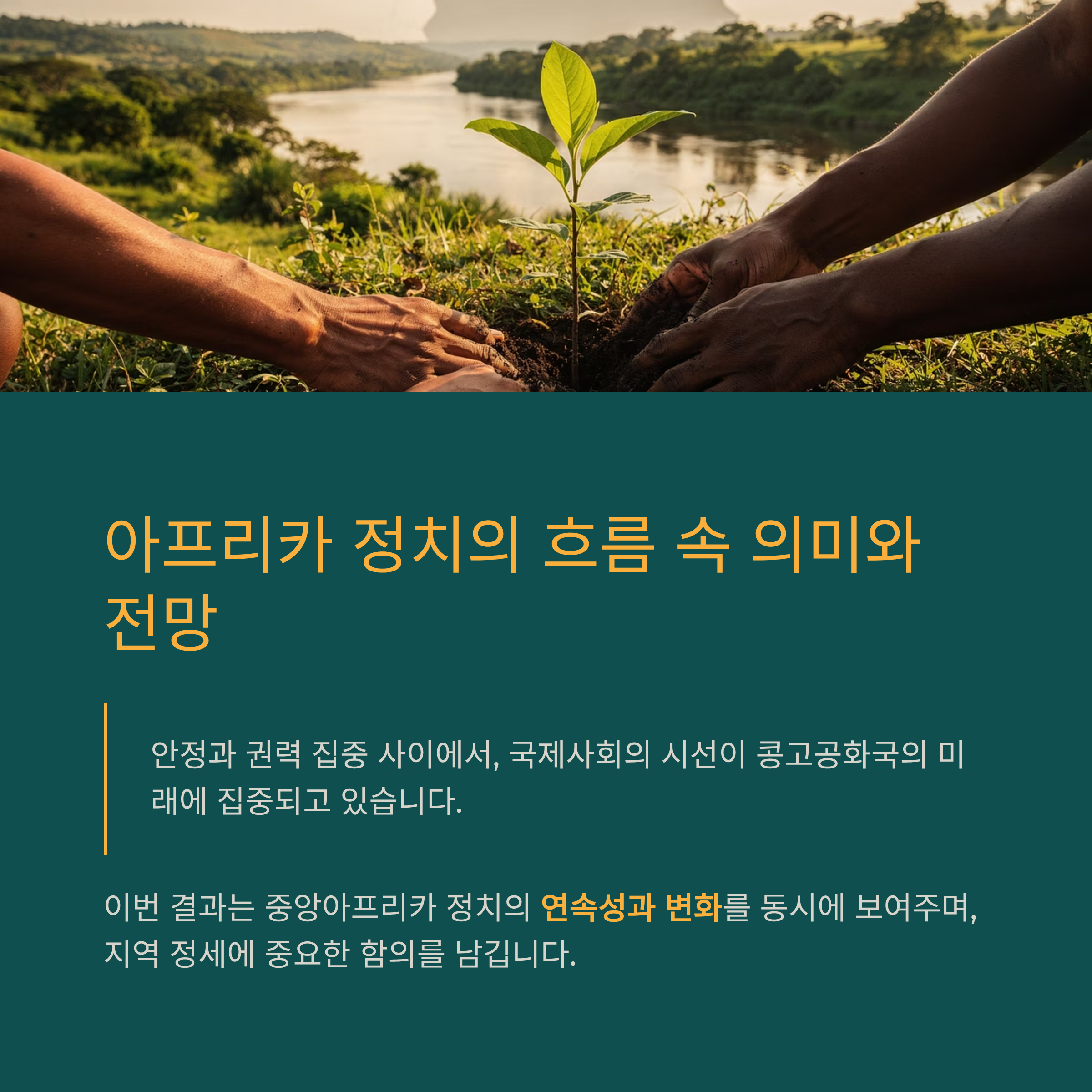이번 선거 결과는 중앙아프리카 정치의 연속성과 변화를 동시에 보여줍니다. 안정과 권력 집중 사이에서 국가의 미래가 어떻게 전개될지에 대한 국제사회의 관심이 집중되고 있습니다.