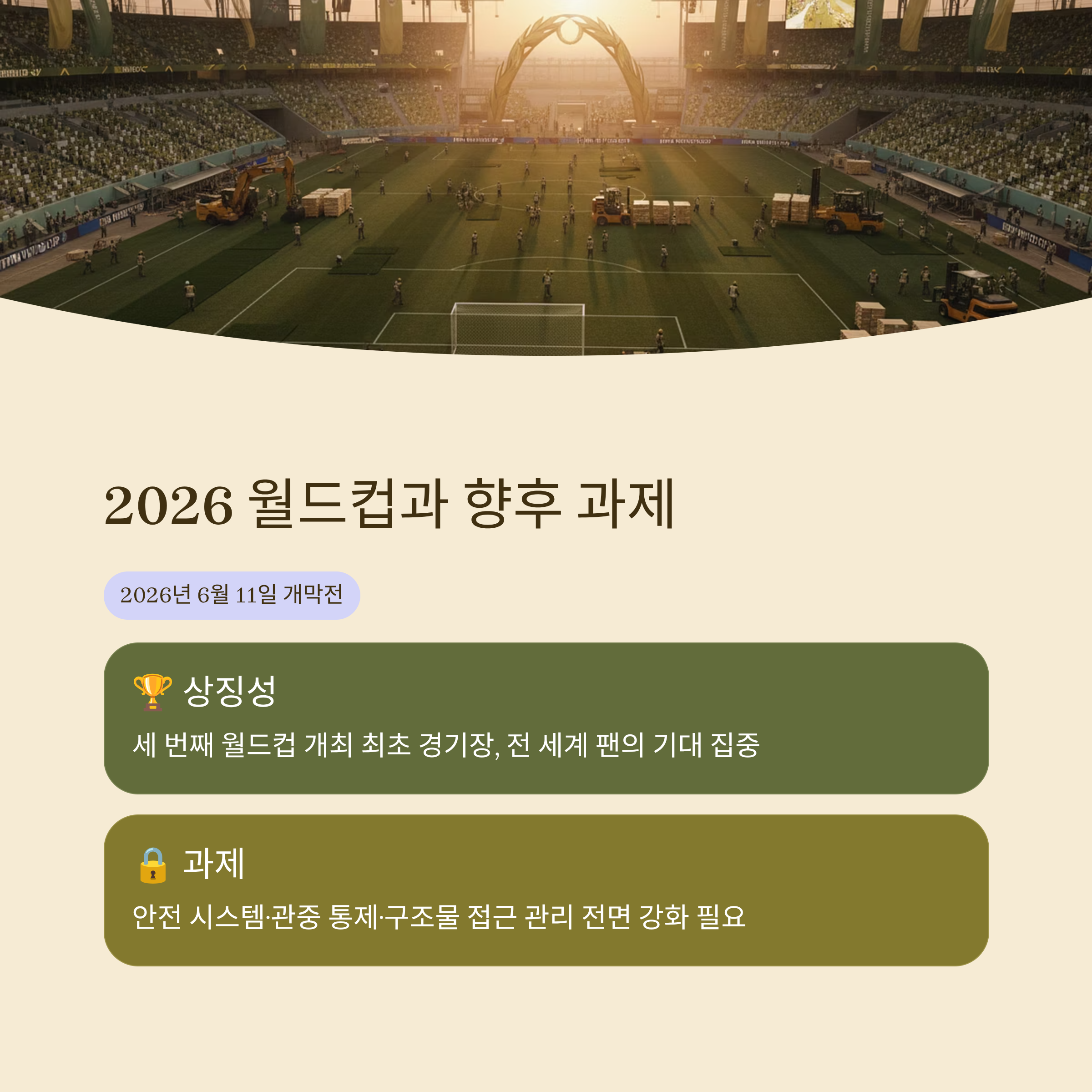 특히 외부 구조물 접근이 어떻게 가능했는지, 안전 통제에 허점은 없었는지가 핵심 쟁점으로 떠오르고 있습니다. 월드컵을 앞둔 시점이기 때문에 국제적 신뢰도와도 직결되는 문제로 확산될 가능성이 있습니다.