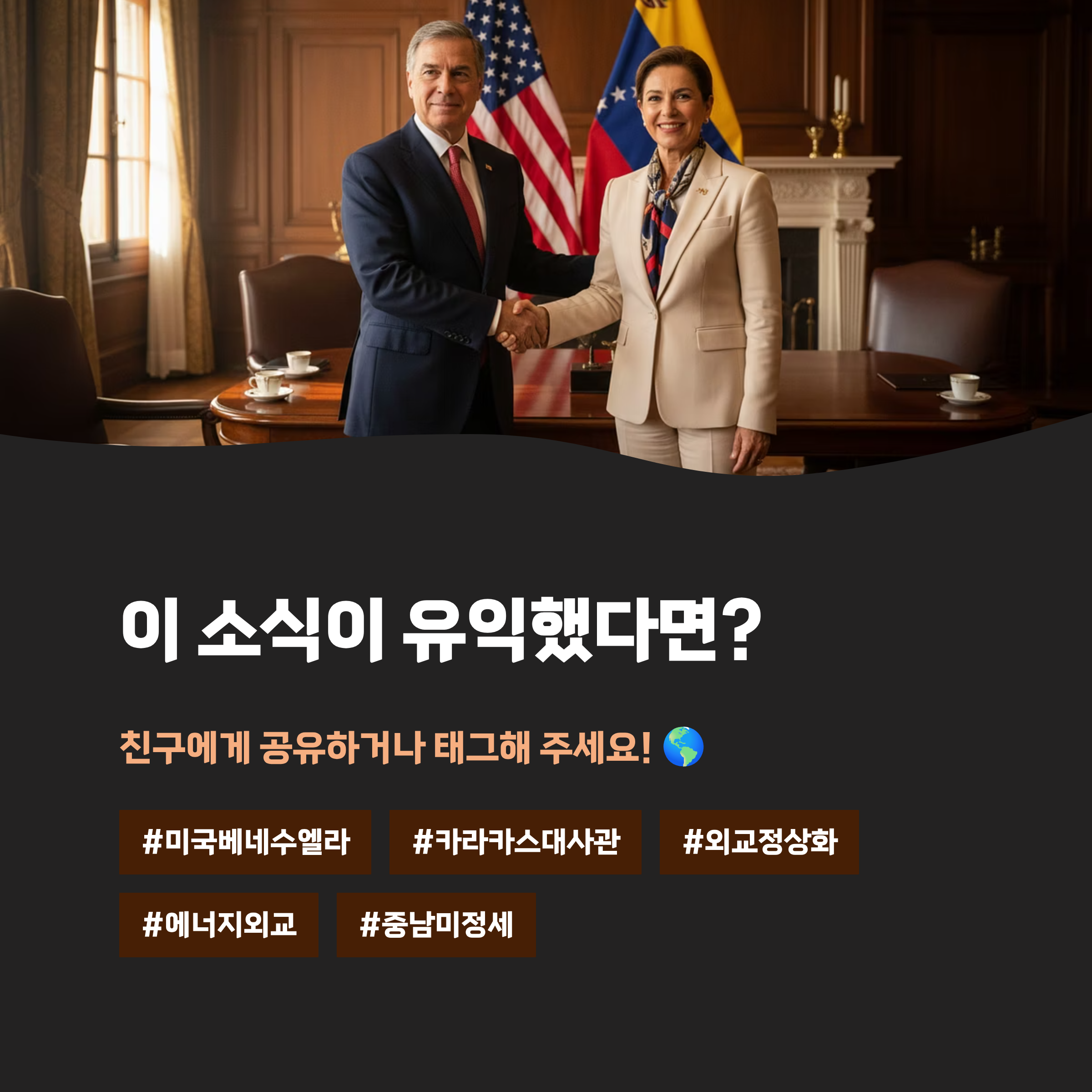 Venezuela와의 외교 재개는 에너지 협력과 지역 안정이라는 전략적 목표를 반영합니다. 이는 양국 간 실질적 협력 확대의 출발점으로 평가됩니다.