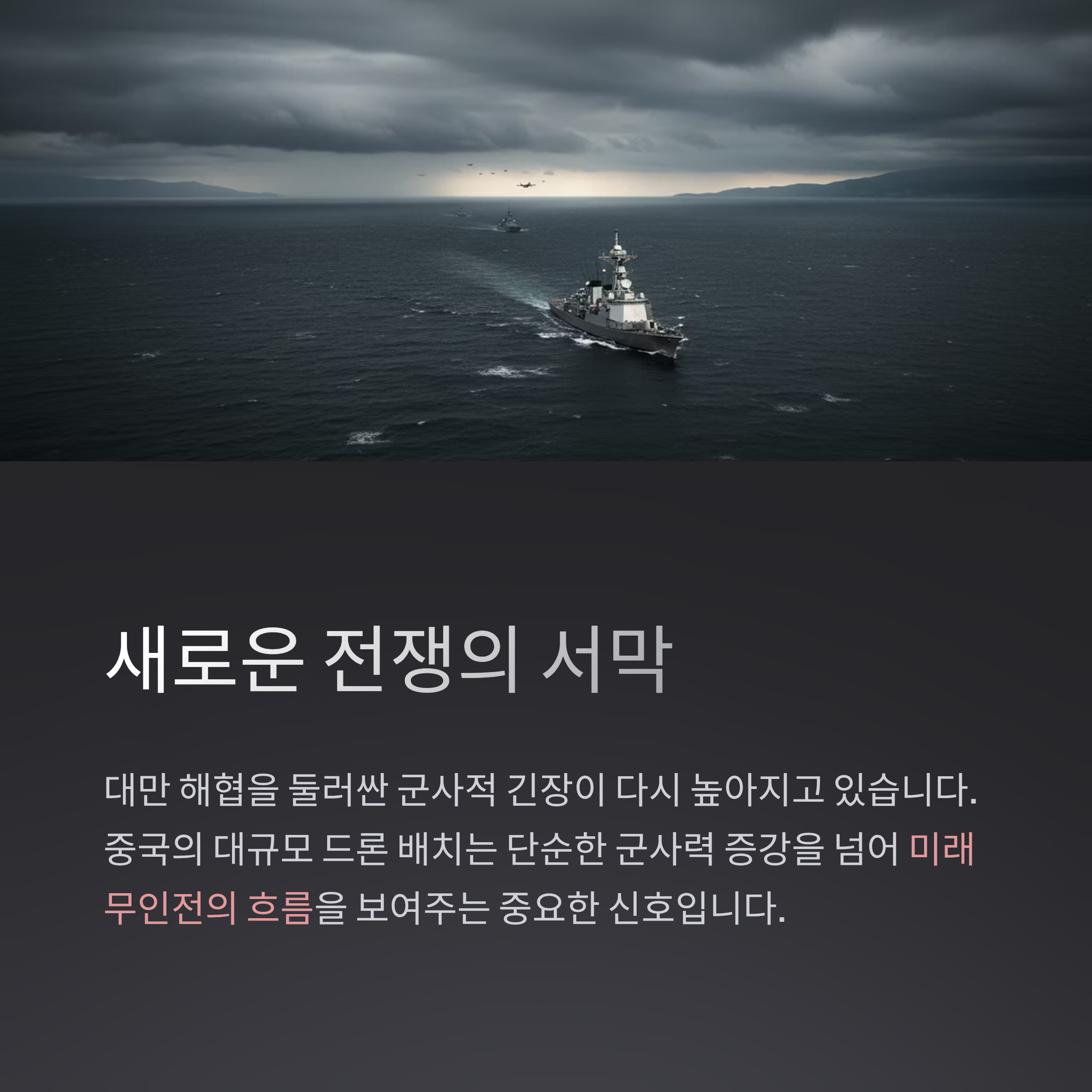 대만 해협을 둘러싼 군사적 긴장이 다시 높아지고 있습니다. 최근 중국이 대규모 드론 전투기를 배치하며 새로운 전쟁 양상을 예고하고 있다는 소식이 전해졌습니다. 이는 단순한 군사력 증강을 넘어 미래 무인전의 흐름을 보여주는 중요한 신호로 평가되고 있습니다.