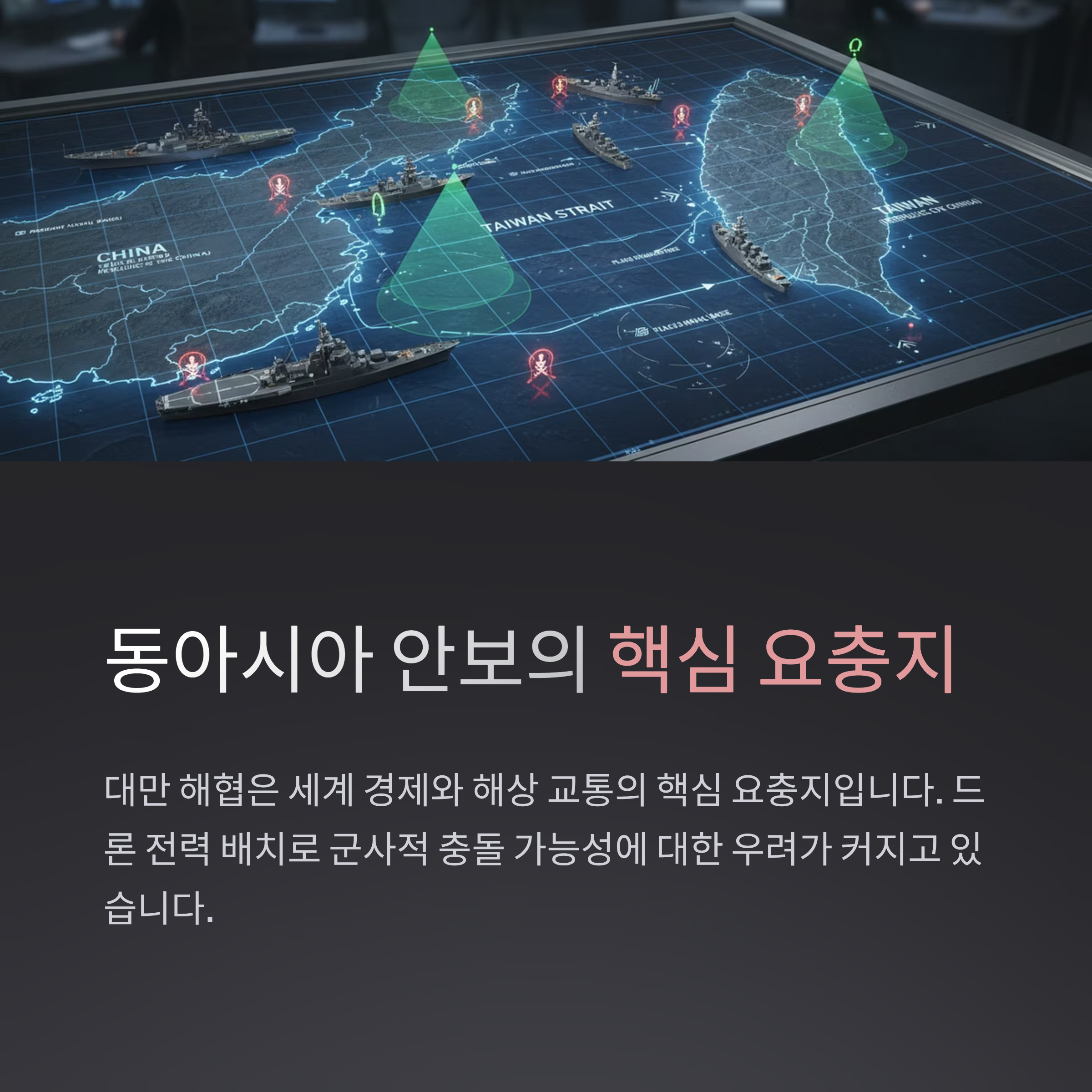 대만 해협 인근에 배치된 드론 전력은 동아시아 안보 환경을 더욱 긴장시키고 있습니다. 이 지역은 세계 경제와 해상 교통의 핵심 요충지로, 군사적 충돌 가능성에 대한 우려가 커지고 있습니다.