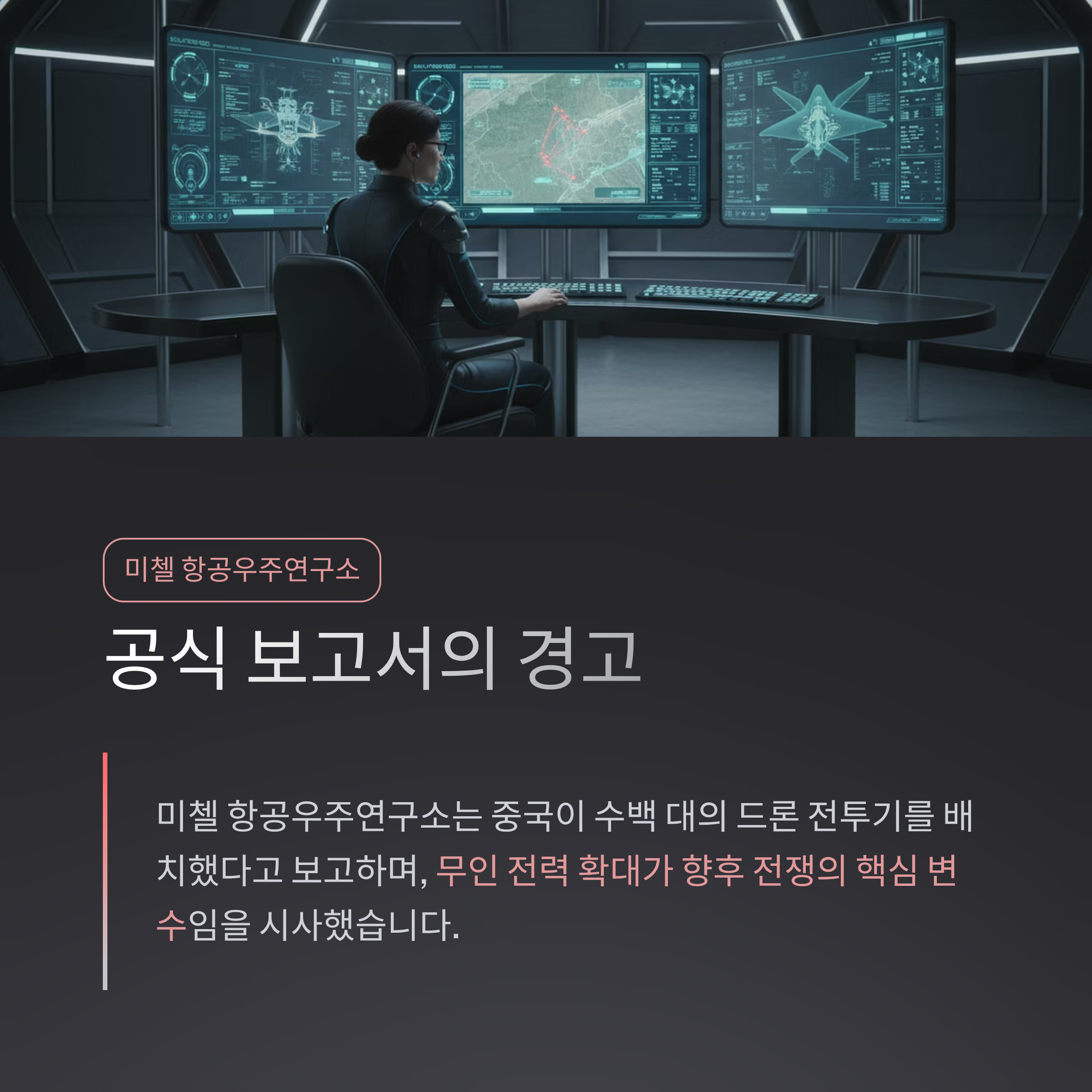 미첼 항공우주연구소는 중국이 수백 대의 드론 전투기를 배치했다고 보고하며 그 전략적 의도를 강조했습니다. 해당 보고서는 무인 전력 확대가 향후 전쟁의 핵심 변수임을 시사합니다.