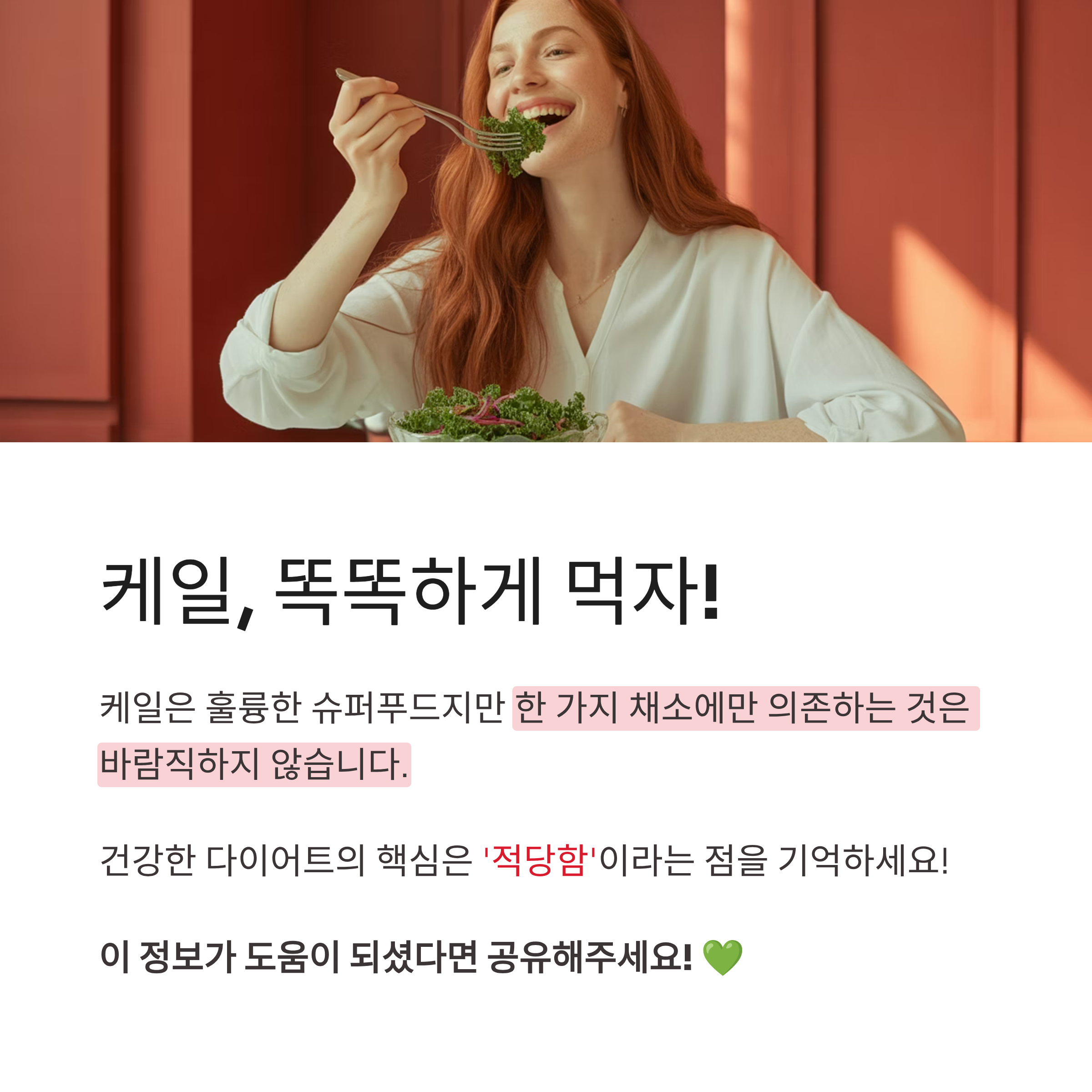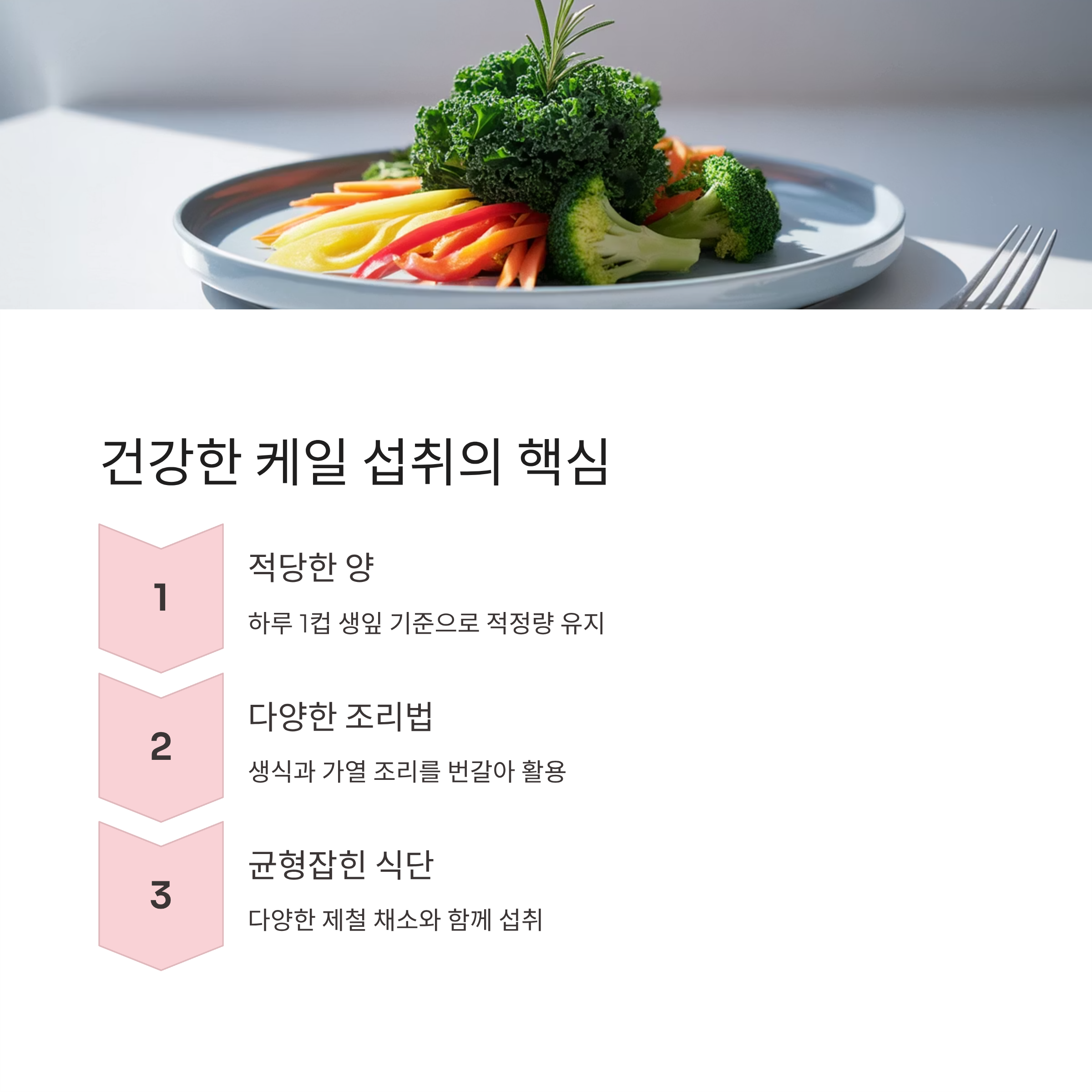 케일은 훌륭한 채소지만 한 가지 식품에 의존하는 건 바람직하지 않아요. 👉 제철 채소를 다양하게 섭취하는 것이 가장 좋은 전략입니다.