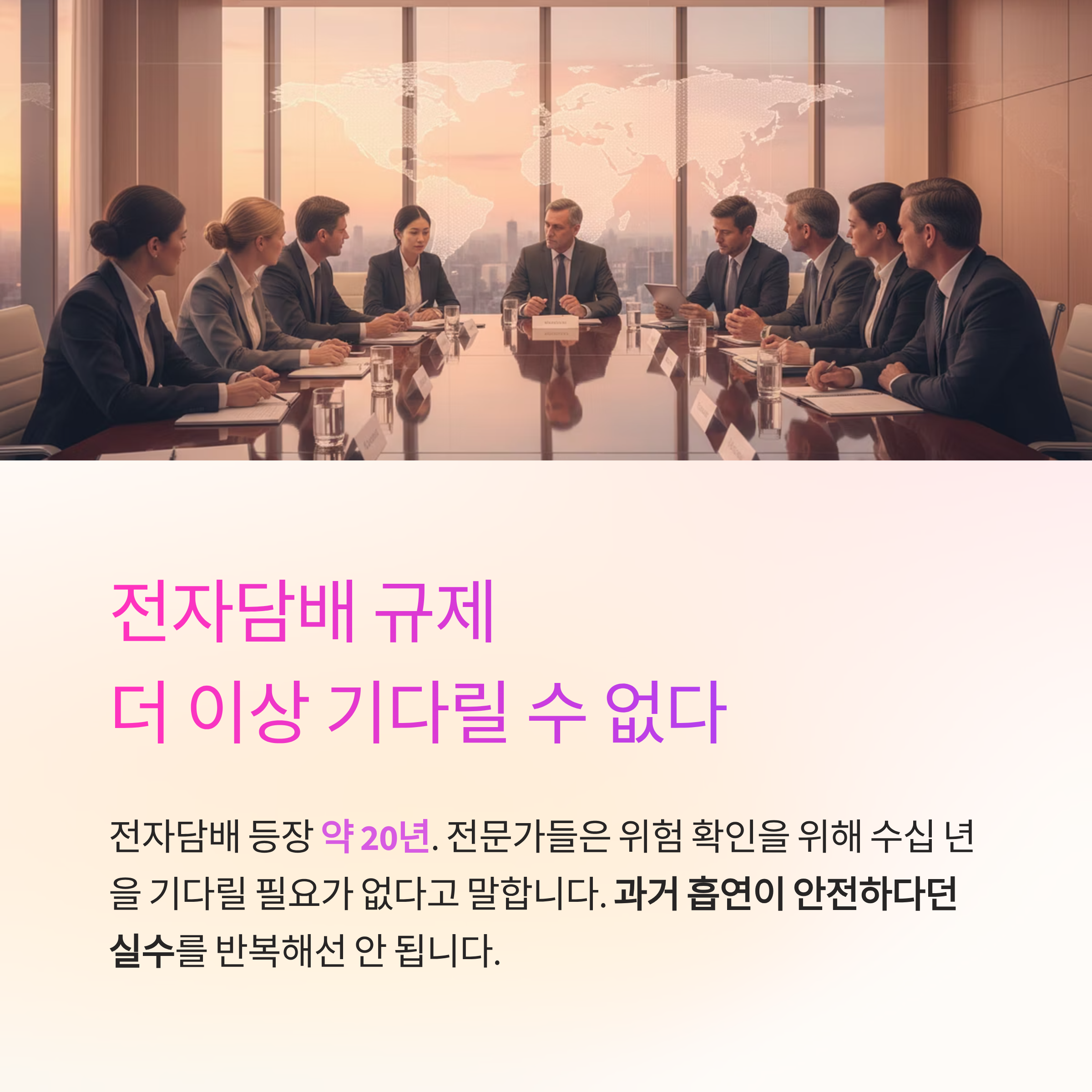 전자담배는 등장한 지 약 20년에 불과하지만 전문가들은 위험을 확인하기 위해 수십 년을 기다릴 필요가 없다고 주장합니다. 과거 흡연이 안전하다고 여겨졌던 실수를 반복하지 말아야 한다는 목소리가 커지고 있습니다.