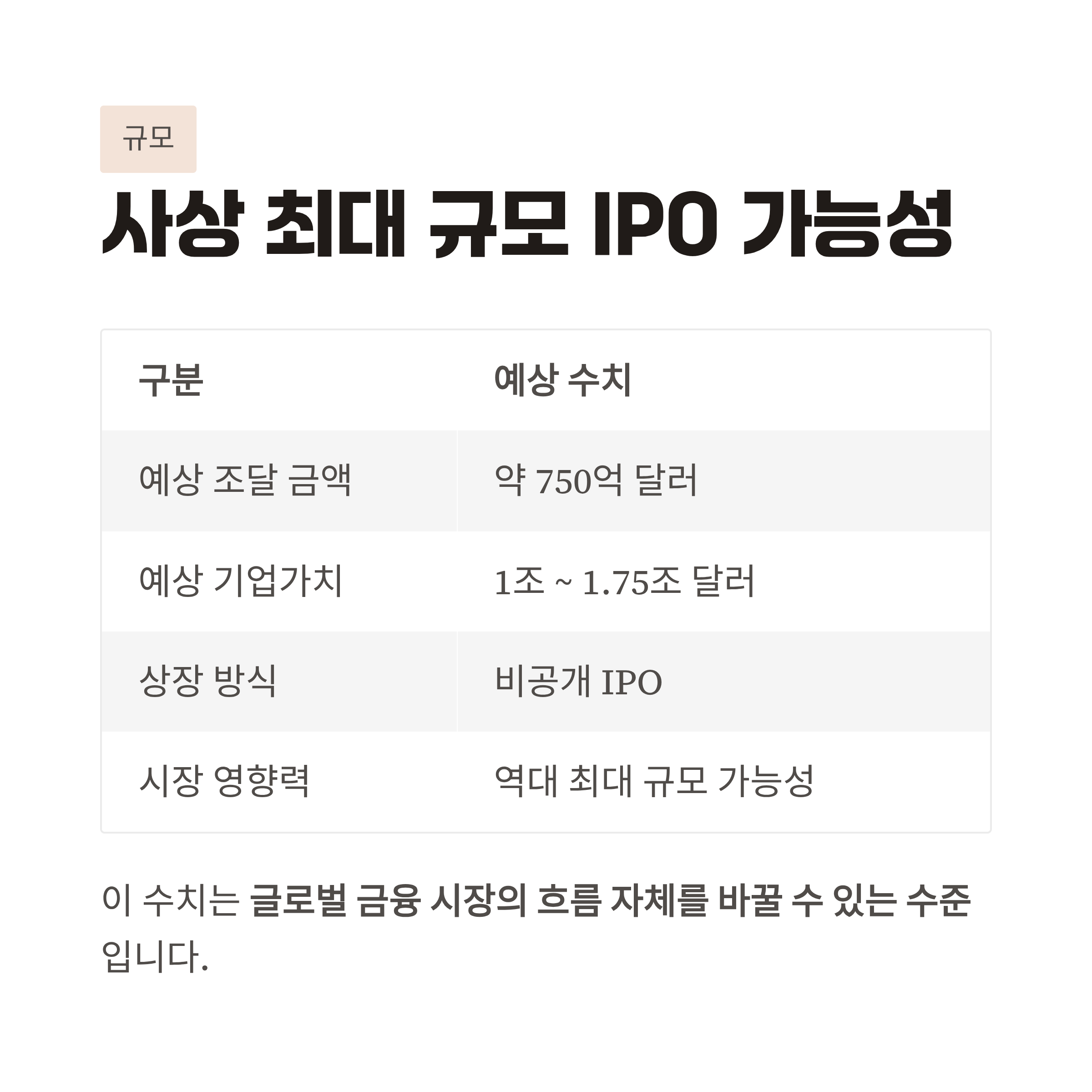 표 설명: 예상 IPO 규모 핵심 정리