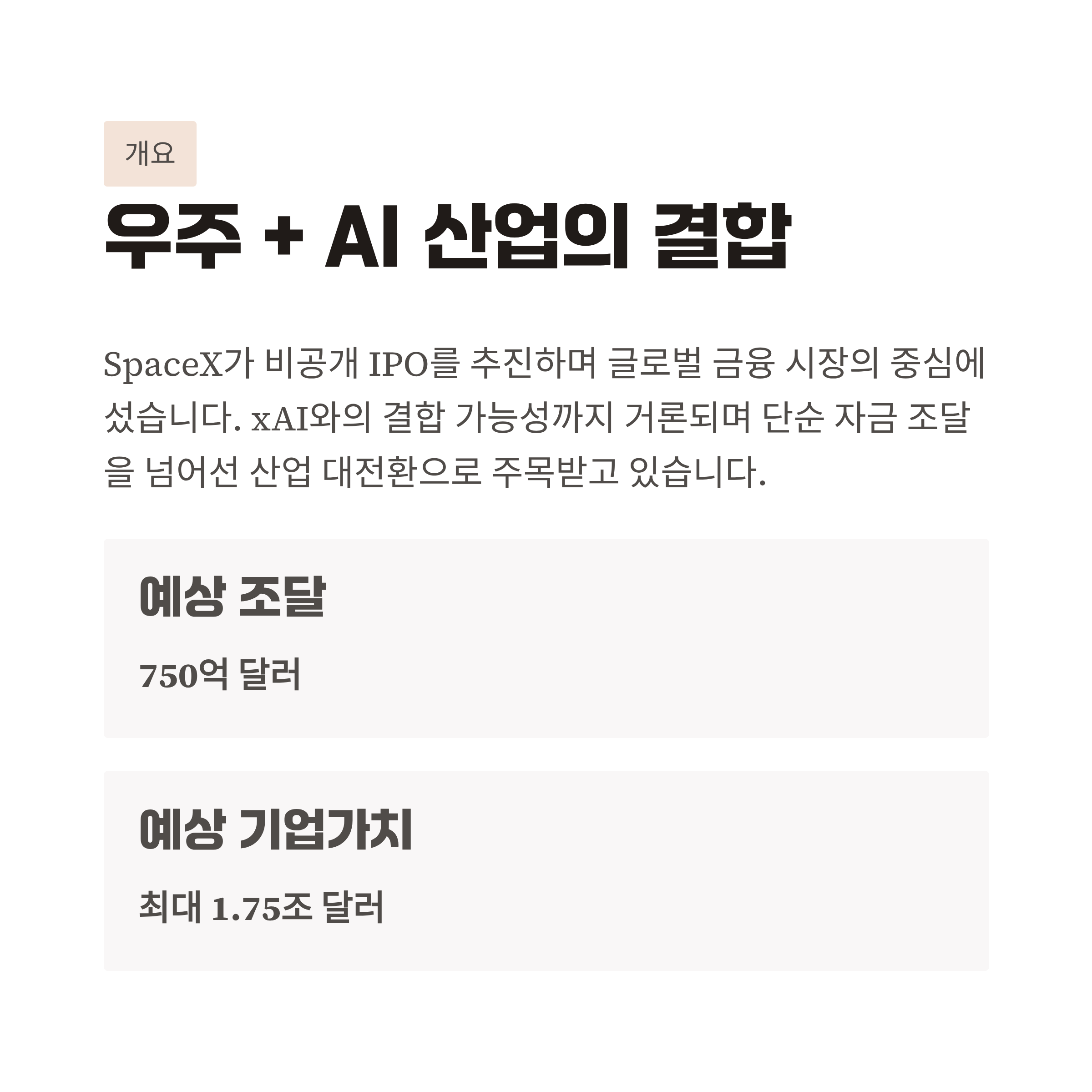 #SpaceX #xAI #IPO #우주산업 #AI산업 #미래기술 #스타링크 #투자전망 #글로벌경제 #테크뉴스