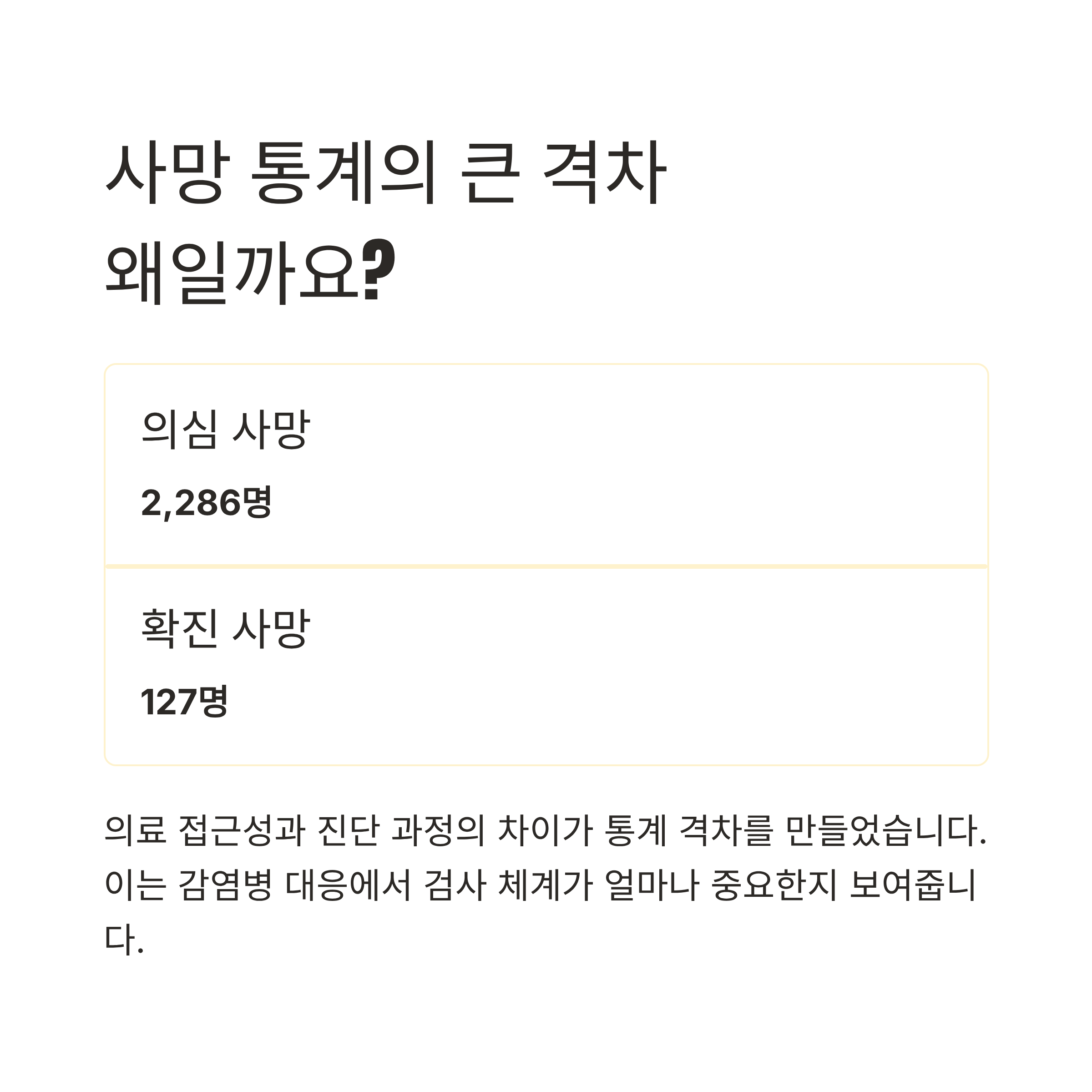 이 수치는 감염병 대응에서 검사 체계가 얼마나 중요한지 다시 한번 보여줍니다.