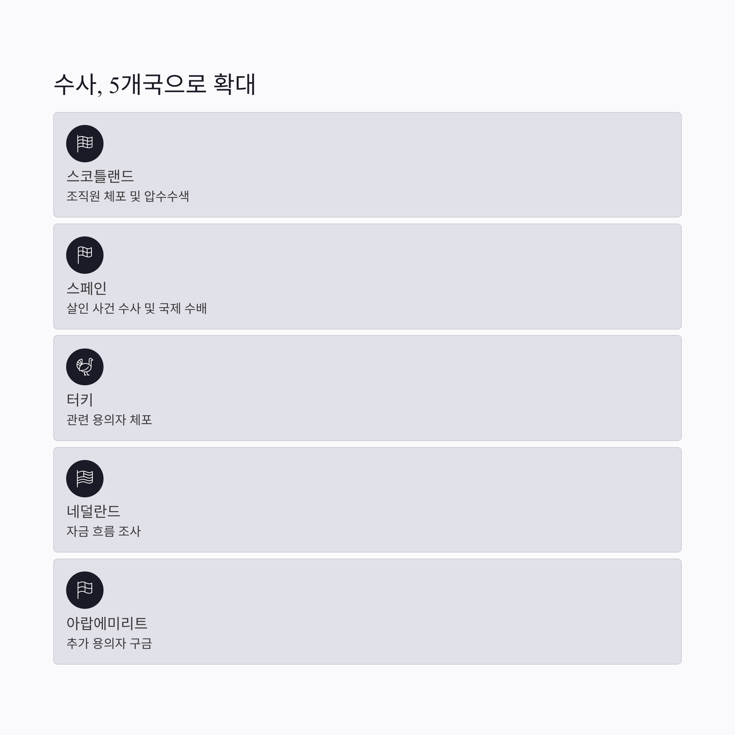 스코틀랜드·스페인 공조 수사, 터키·네덜란드·UAE까지 확대